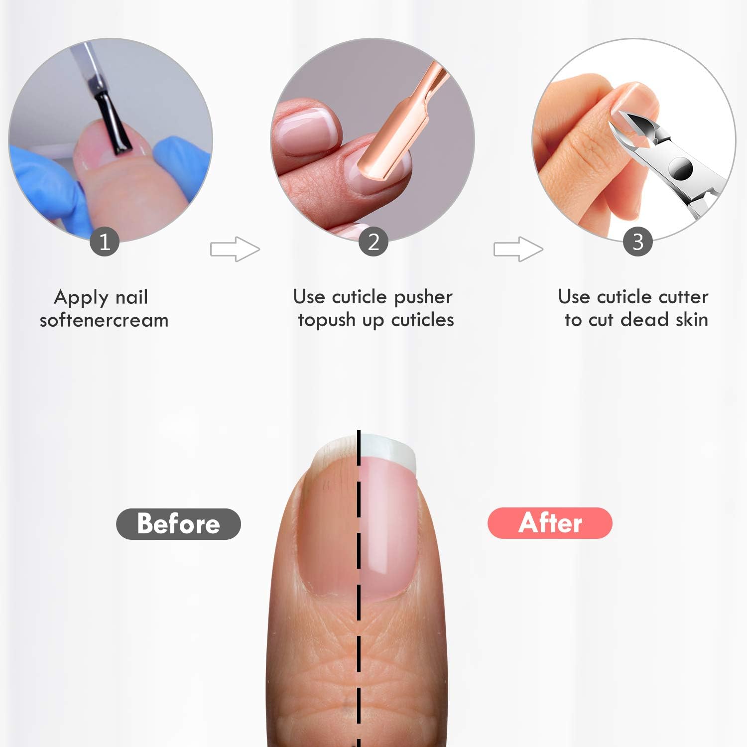 • Ergonomic Non-slip Handle Design -- Our professional cuticle remover tools set is designed with an ergonomic non-slip handle, providing you with a comfortable hand feeling, you can remover the cuticles more effectively. In addition, the rose gold color makes it a beautiful set of manicure artwork.