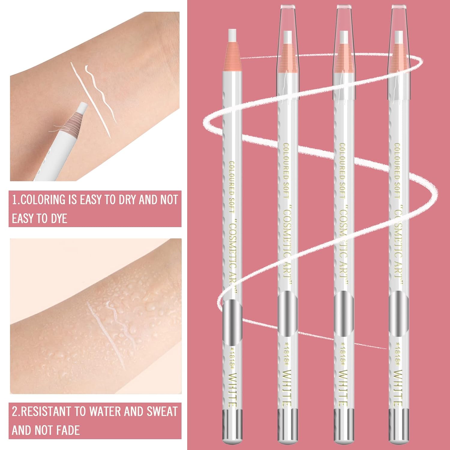 • 1.【4Advanced thrush pens】4 high quality white hard refill eyebrow pencils, including 1 eyebrow sharpener with handle and 1 pencil sharpener.