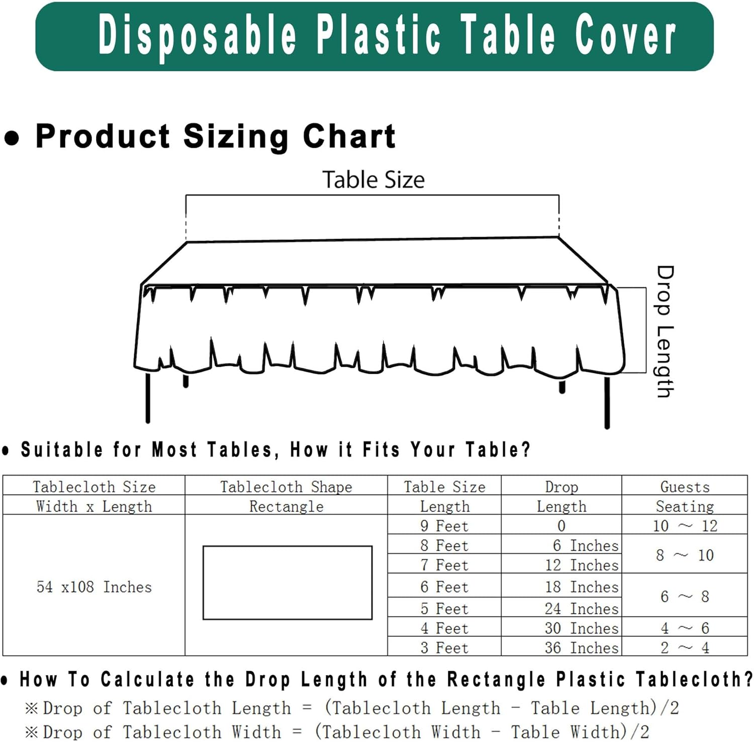 • ✯ WIDE APPLICATIONS: The table coverings not only suitable for indoor and outdoor parties, cocktail, buffet, card table, pub bistro restaurant, bachelorette, engagement, weddings banquet, holiday festival vacation dinner, dinning kitchen tables, bbq, barbecue, picnic, family outings events, but also great to cover the floor well to prevent splashing or other small particles, when you need to repaint your home or bathe your baby or do crafts with your child.