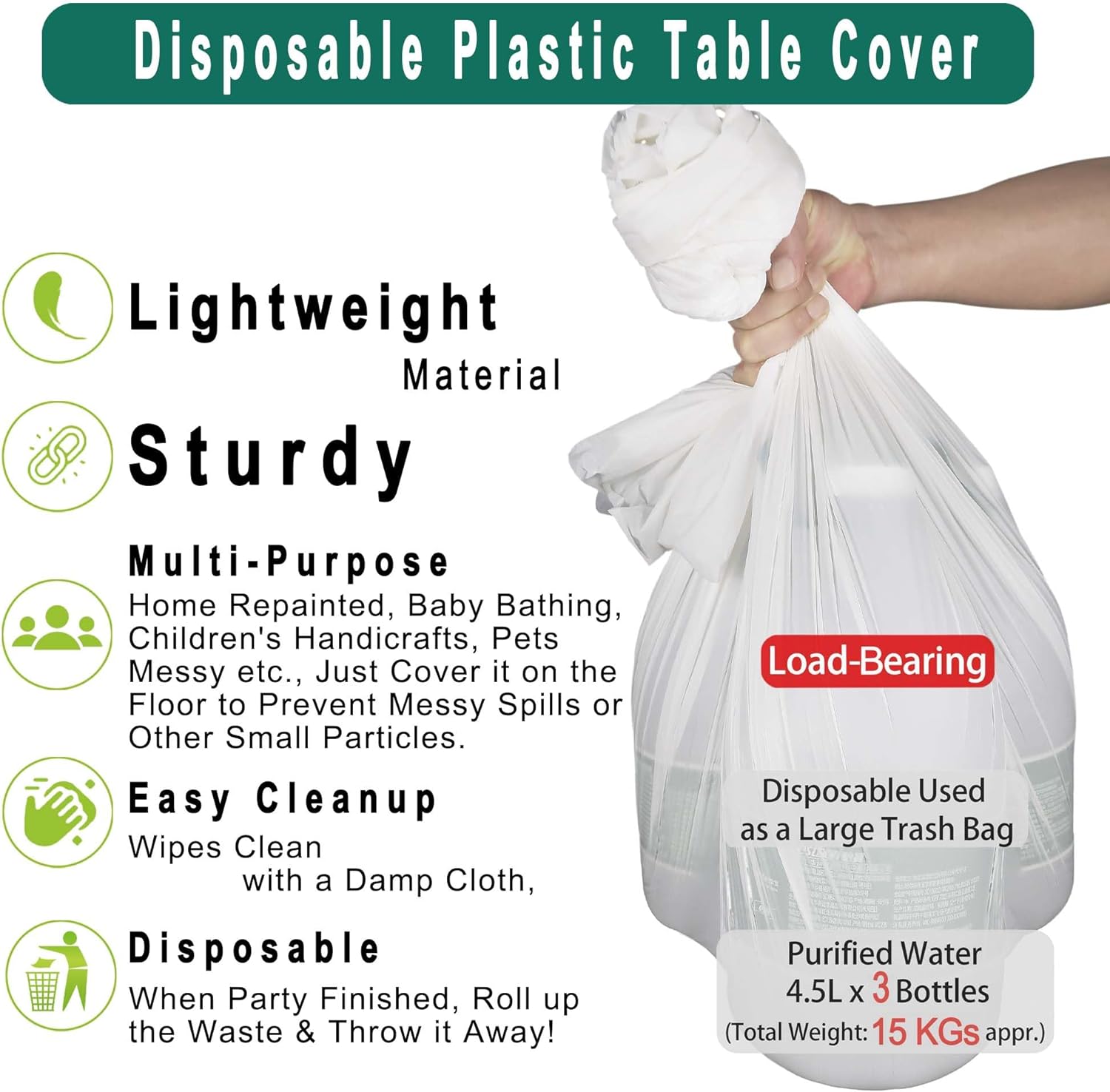 • ✯ WIDE APPLICATIONS: The table coverings not only suitable for indoor and outdoor parties, cocktail, buffet, card table, pub bistro restaurant, bachelorette, engagement, weddings banquet, holiday festival vacation dinner, dinning kitchen tables, bbq, barbecue, picnic, family outings events, but also great to cover the floor well to prevent splashing or other small particles, when you need to repaint your home or bathe your baby or do crafts with your child.