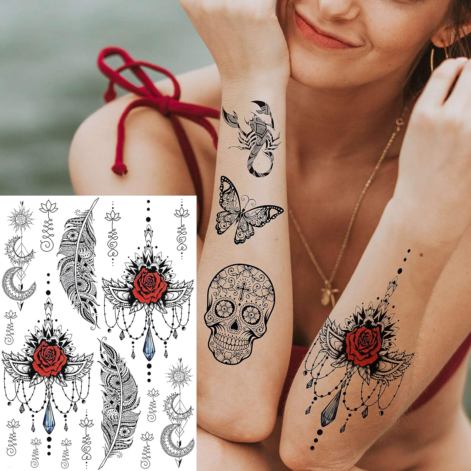 • 🍷Easy Application And Long Lasting🍸 Water Transfer Black Tattoos Temporary Paste Is Easy To Use. To Apply Variety Sleeve Tattoos For Women On Skin By Wet It With Water And Wait For 20-30 Second. Waterproof Tatoos Painting Are Disposable Durable And Long Lasting Tattoo On Body For 4-7 Days But Washable Very Easy To Remove By Rub It With Makeup Remover Oil Or Alcohol.