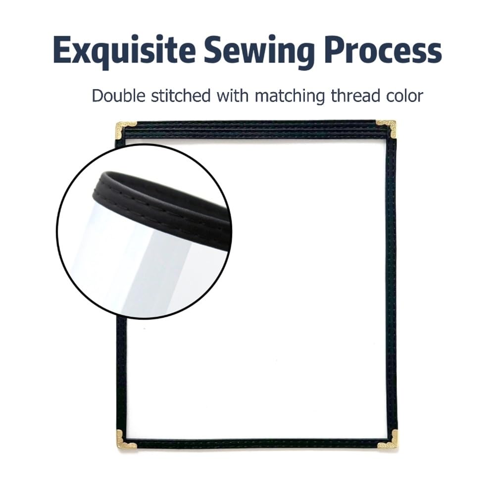 • ✔Durable & Protective: Made from crystal-clear vinyl, this menu holder offers excellent visibility while safeguarding your menus against stains, spills, and general wear. The double-stitched edges enhance its strength, ensuring long-lasting durability in busy environments.