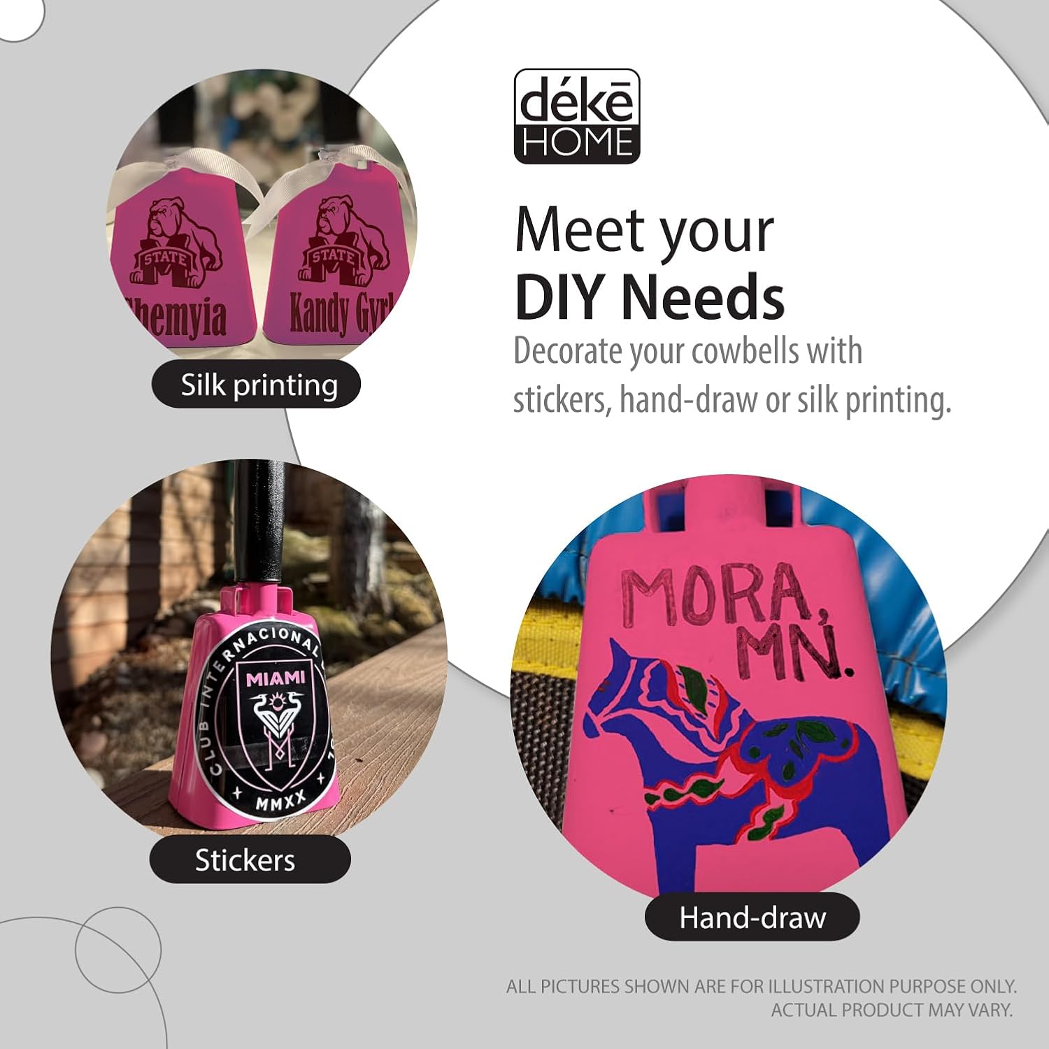 Deke Home - 2 Pack 7 Inch Steel Cowbells with Handle, Loud Noise Makers for Football, Sports, Parties, Competitions, School Spirit & Safety, Large Hand Bell for Cheering & Percussion Instrument