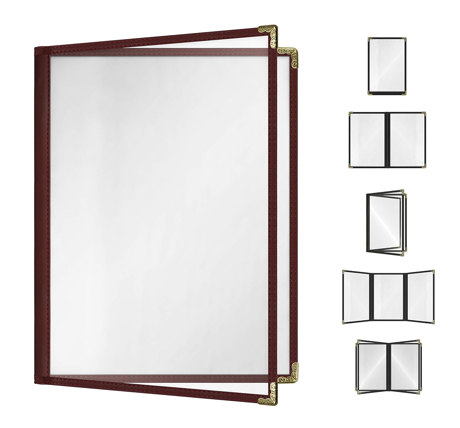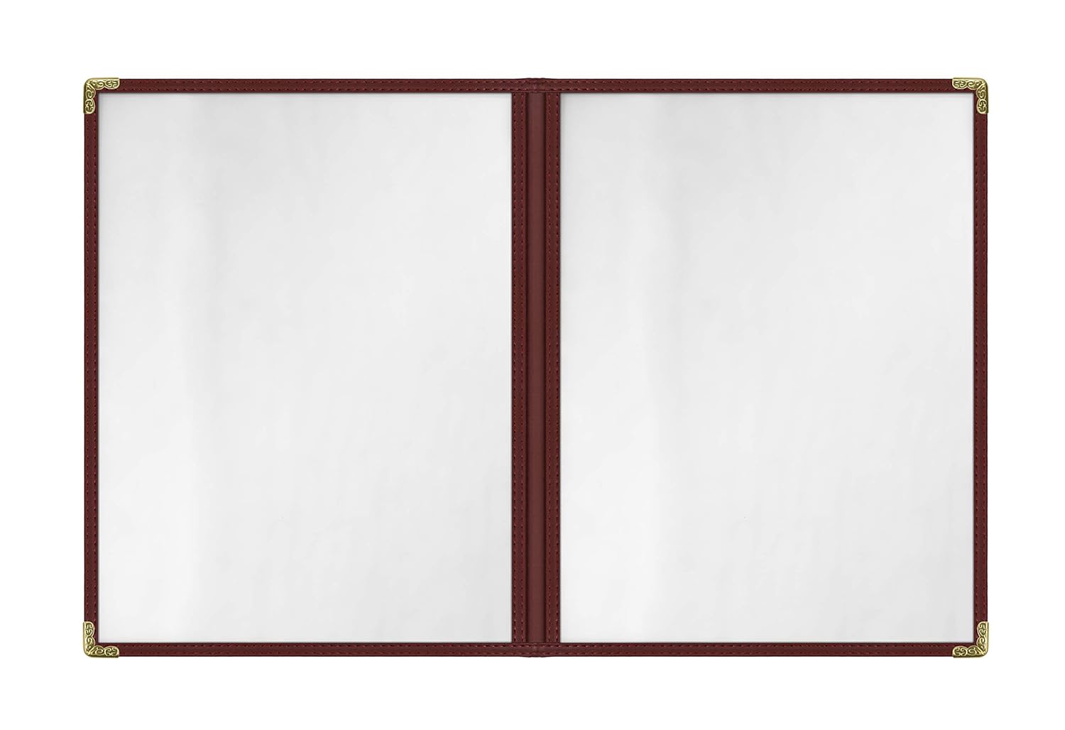 Goodsmart Restaurant Menu Covers - 25 Pack Burgundy 8.5" x 11", 2-Page/4-View, Side-Loading Vinyl Menu Holders, Clear Sleeves, Double-Stitched Edge, Leather-Style Café Menu Covers with Gold Corners