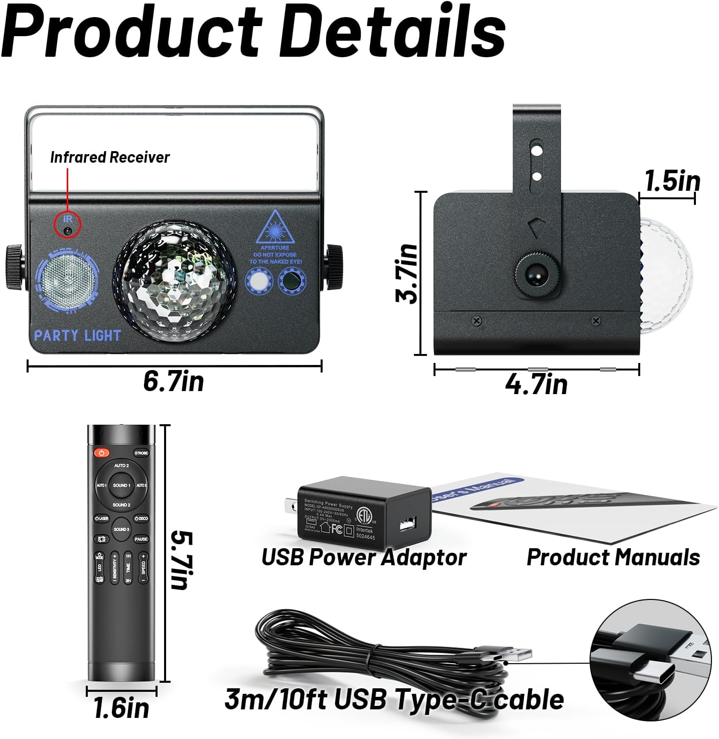 • Disco Ball Light with 3 Working Modes: AUTOFLASH Sound Activated, you can choose different working modes according to your needs. stage light would be suitable for any occasions. The best choice for Gift-giving and Entertainment.