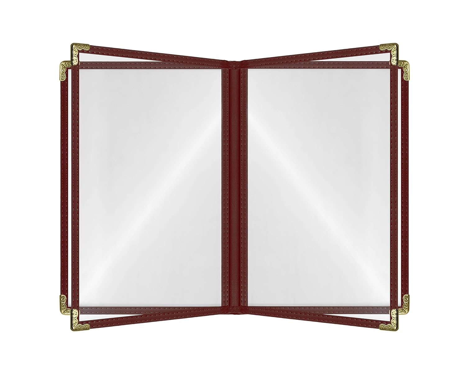 Goodsmart Restaurant Menu Covers - 25 Pack Burgundy 8.5" x 11", 4-Page/8-View, Side-Loading Vinyl Menu Holders with Clear Sleeves, Double-Stitched, Leather-Style Café Covers with Gold Corners