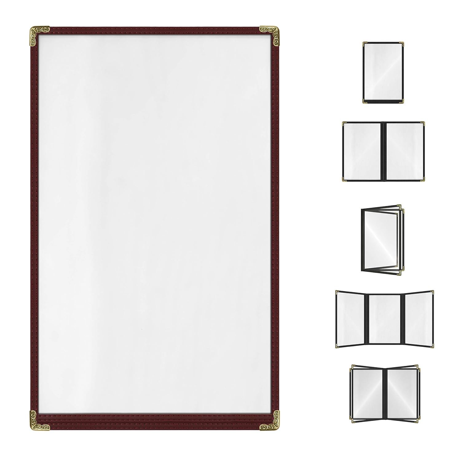 • ✅Crystal Clear Vinyl for Protection and Clarity: The premium-quality vinyl cover safeguards menu pages from spills, stains, and wear, while maintaining a transparent, polished look that enhances readability and presentation.