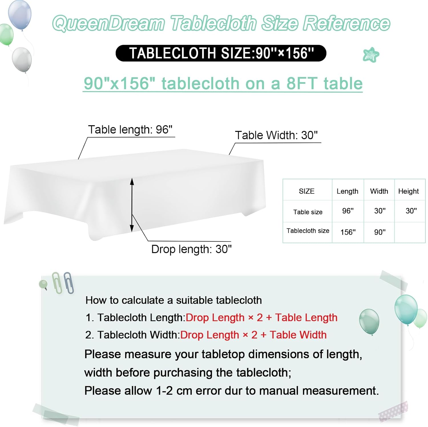 • QueenDream Warm Tip: The pictures below are for your reference ONLY and make sure your tablecloth size looking through the size picture.If you have any questions about the product, please feel free to contact us.