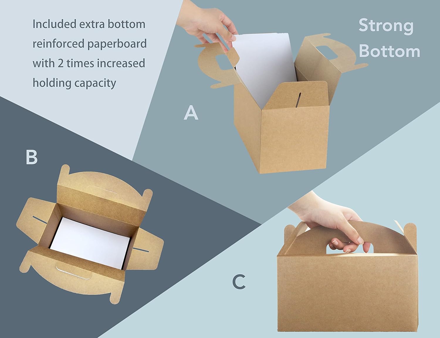• Strong Bottom Tape Free Empty Treat Boxes:An extra bottom reinforced paperboard is included,with 2 times increased holding capacity than others.Kraft gift boxes fold flat for easy packaging.No need to use additional tape for the bottom,which helps make it clean and environment-friendly.