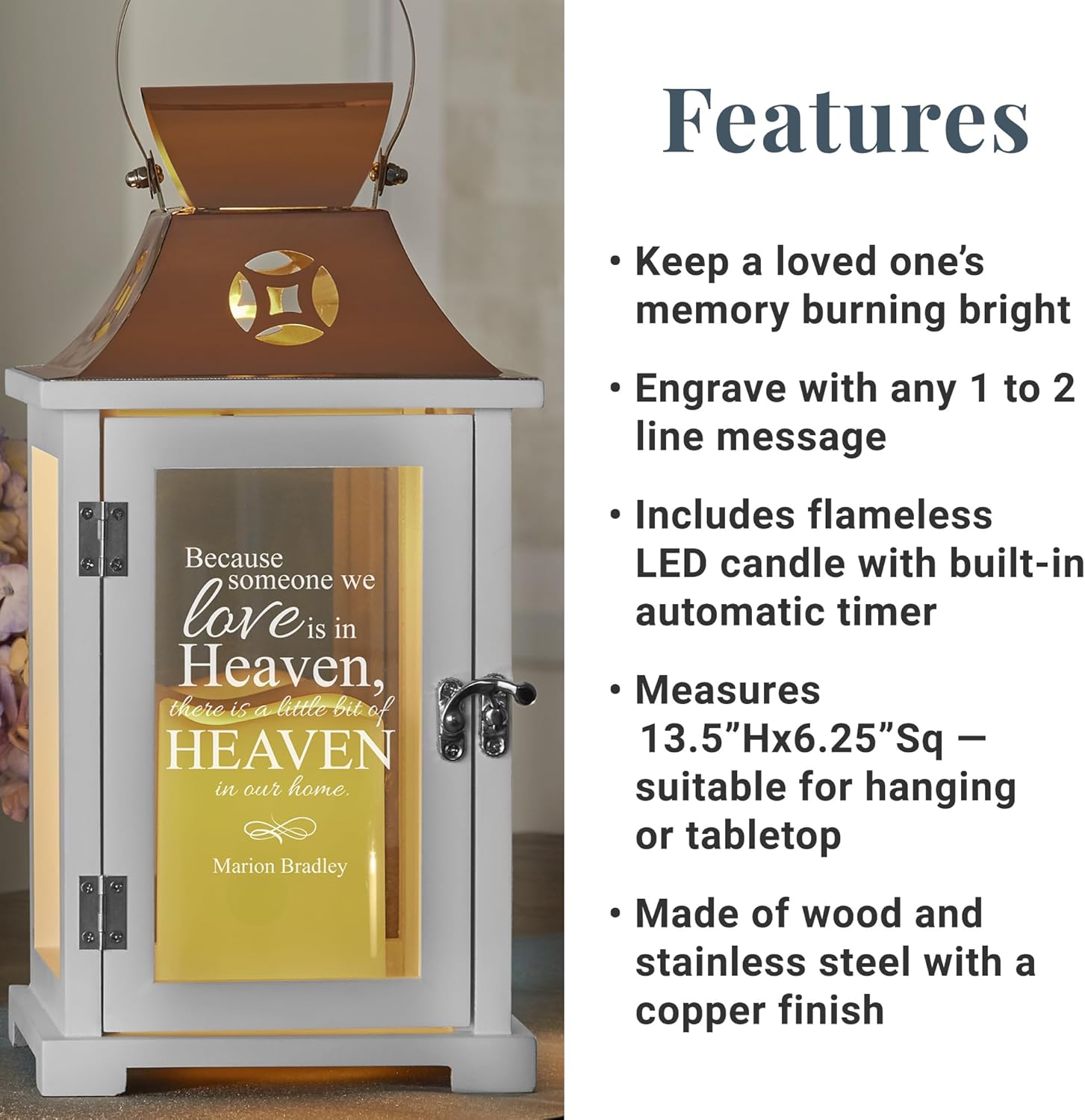 • LIGHT THE WAY: "Because someone we love is in heaven, there is a little bit of heaven in our home forever" appears on every lantern. Suitable for hanging or freestanding, recommended for indoor use only.