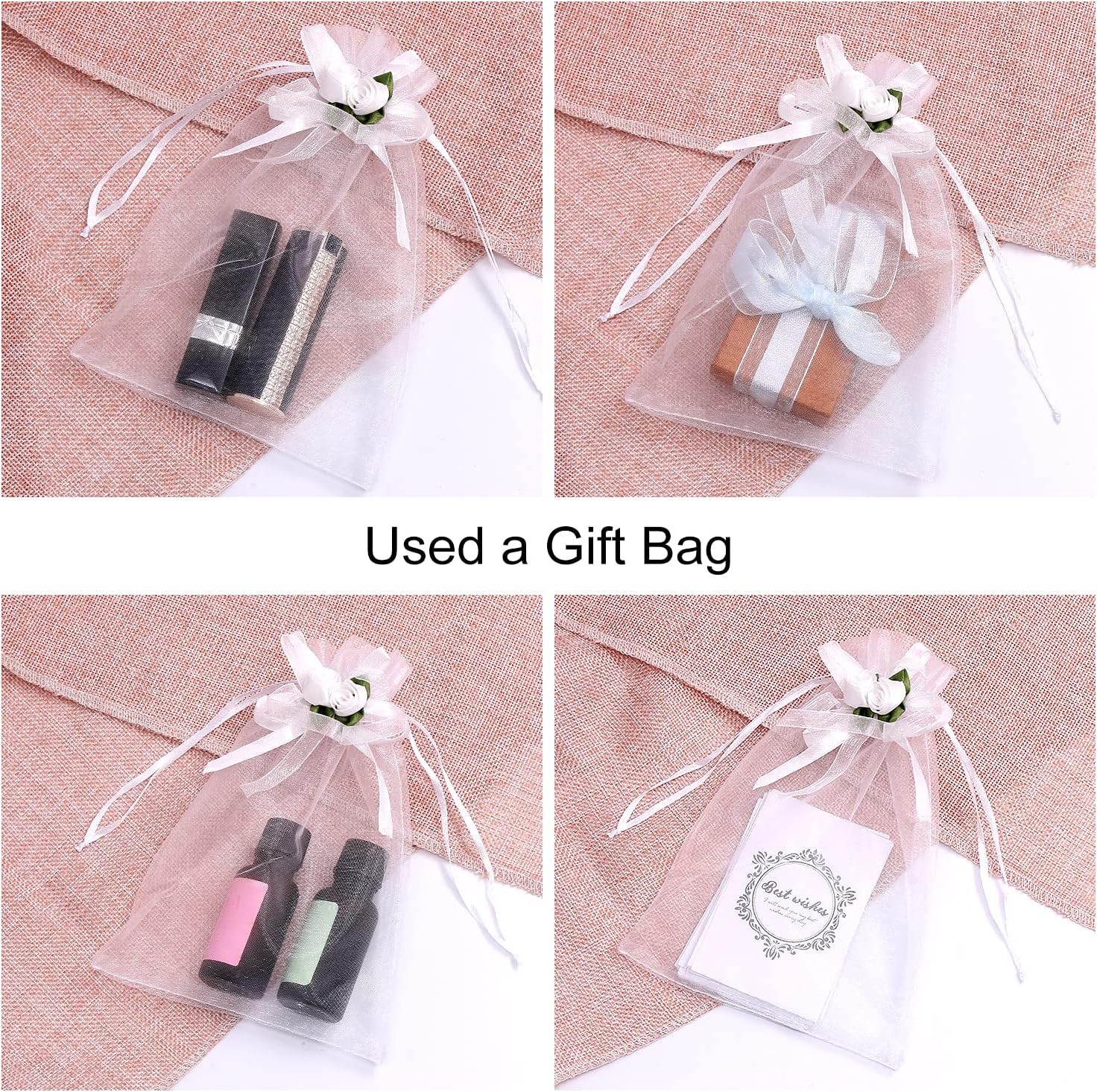 SumDirect Rose Organza Gift Bags - 50Pcs 5x7 inch White Wedding Favor Gift Bags, Jewelry Pouches with Drawstring for Party Wedding Christmas Valentine