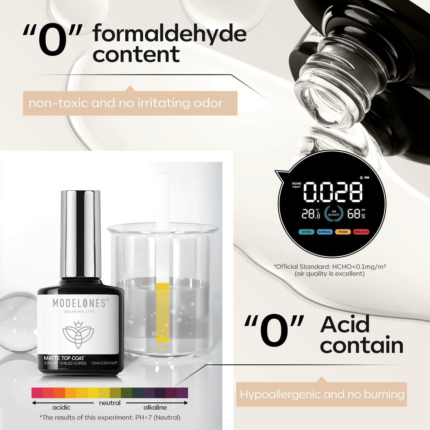 • Upgraded Formula: Modelones Matte Top Coat Gel Polish is made of upgraded formula, which can better cope with the problems that other top coats met, avoid nicks, chips and smudges, bringing you a perfect matte effect.