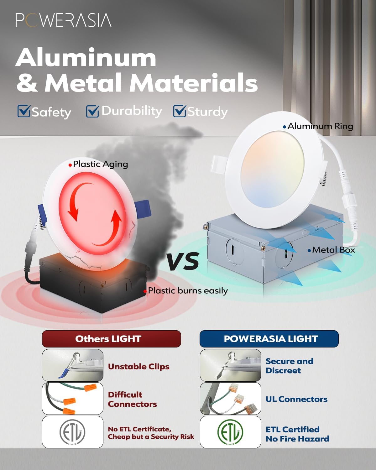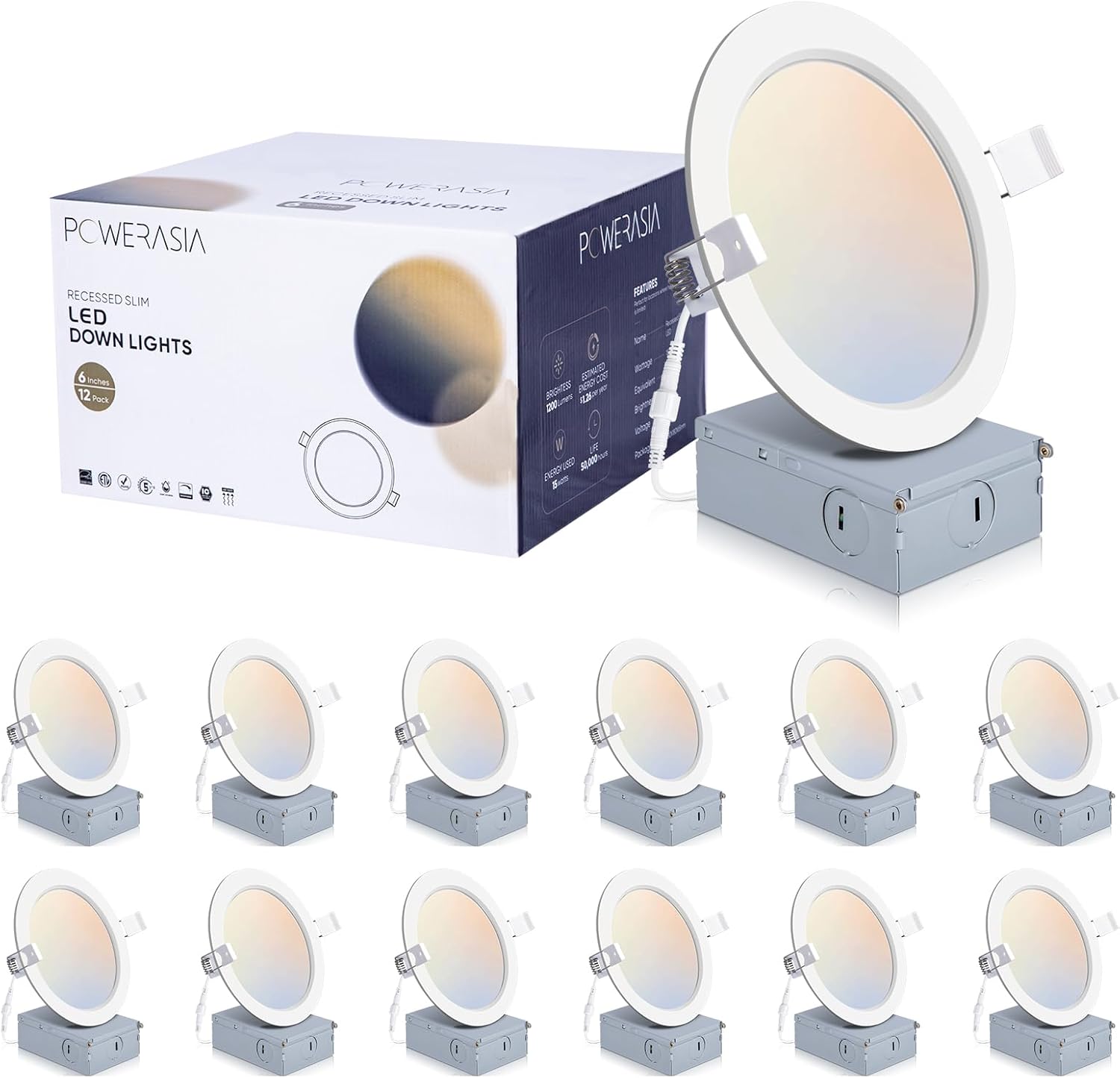 • 💡【High Brightness】 POWERASIA 90+CRI technology brings true color rendering to your house. The 6-inch slim lights use the new generation of LED chips with higher lumens and lower power. 1200LM 15 Watts, which equals to 220W incandescent lamp, saving you up to 88% in energy costs.