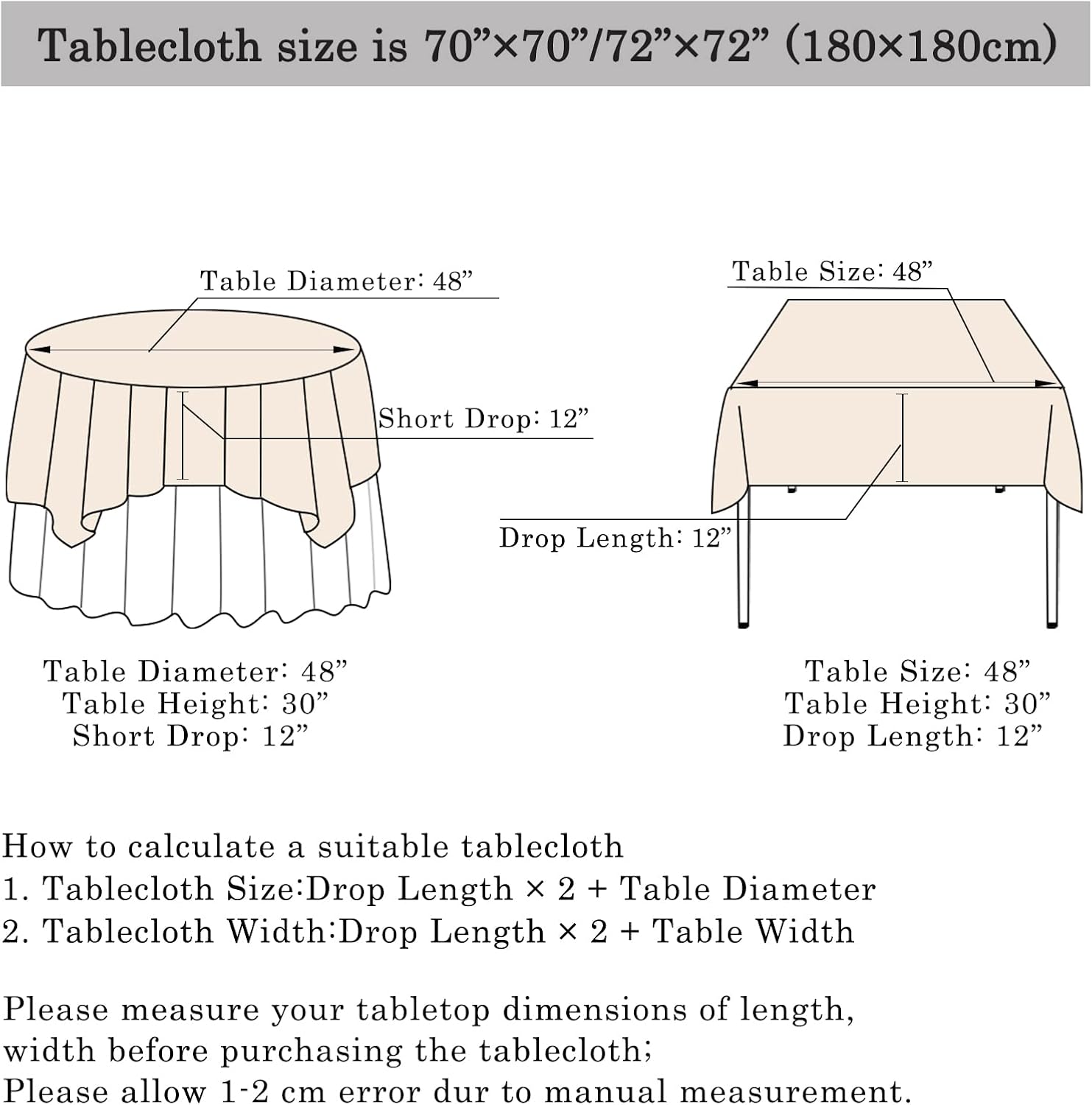 • ❀Black Table Cloths: It will be seamless until the width is over 48 Inch , BUT the seam position is well-designed and symmetrical .