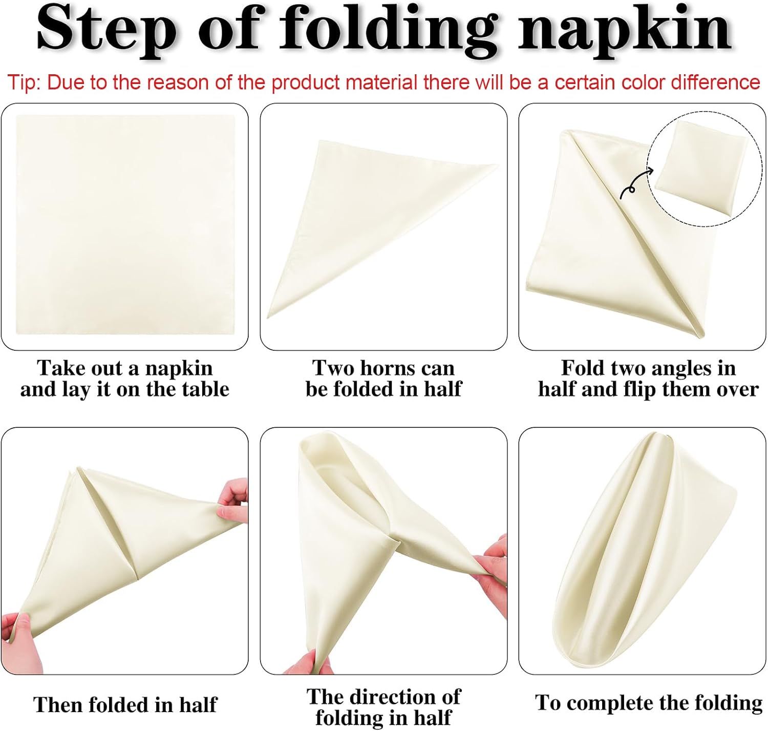 • Package content: you will receive 12 pieces of satin napkins in ivory, each is 17 x 17 inches/43 x 43 cm in size, the quantity is very large, enough for daily use and replacement