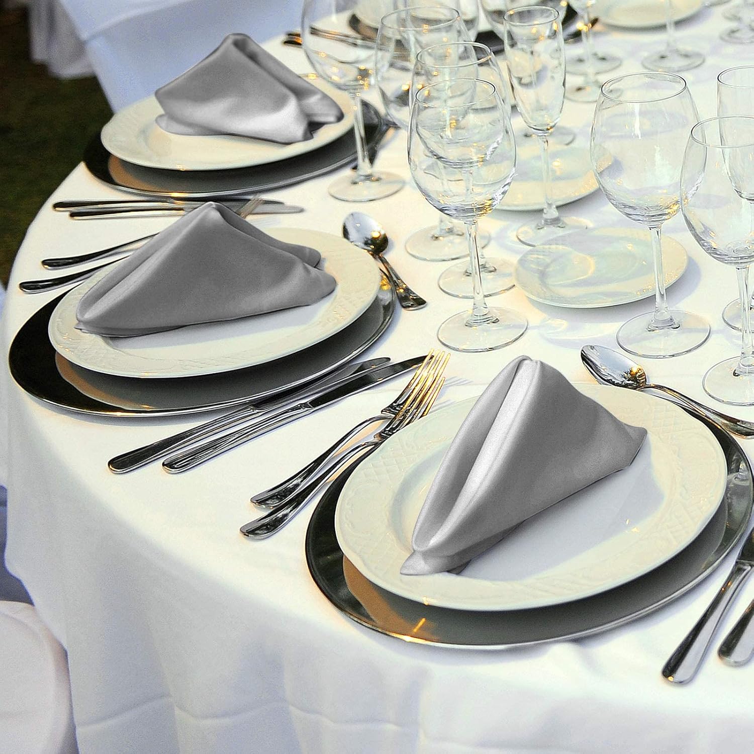 ANECO 12 Pieces Satin Napkins Soft Dinner Napkins Square Table Napkins 17 x 17 Inches for Restaurant Weddings Party Dinner Decoration (Grey)