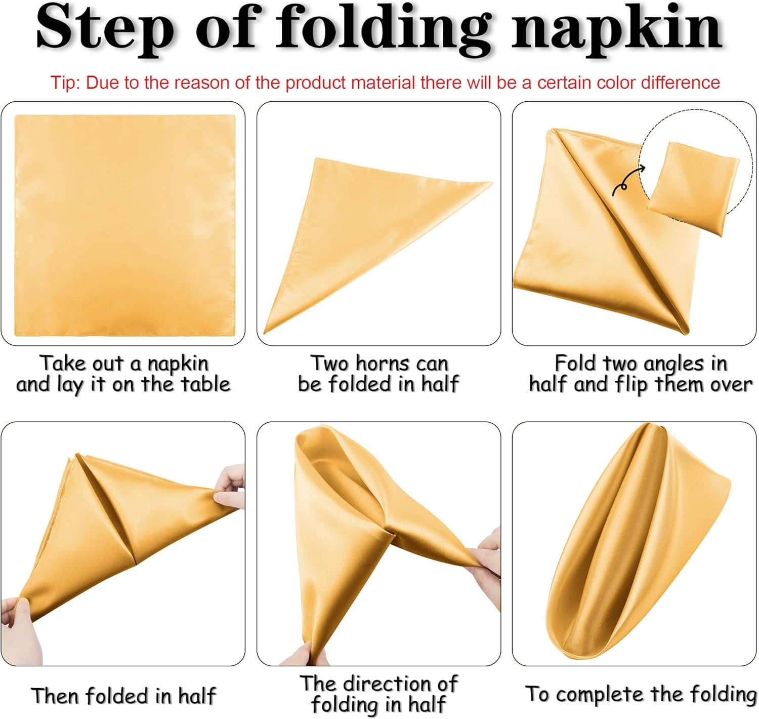 • Package content: you will receive 12 pieces of satin napkins in gold, each is 17 x 17 inches/43 x 43 cm in size, the quantity is very large, enough for daily use and replacement