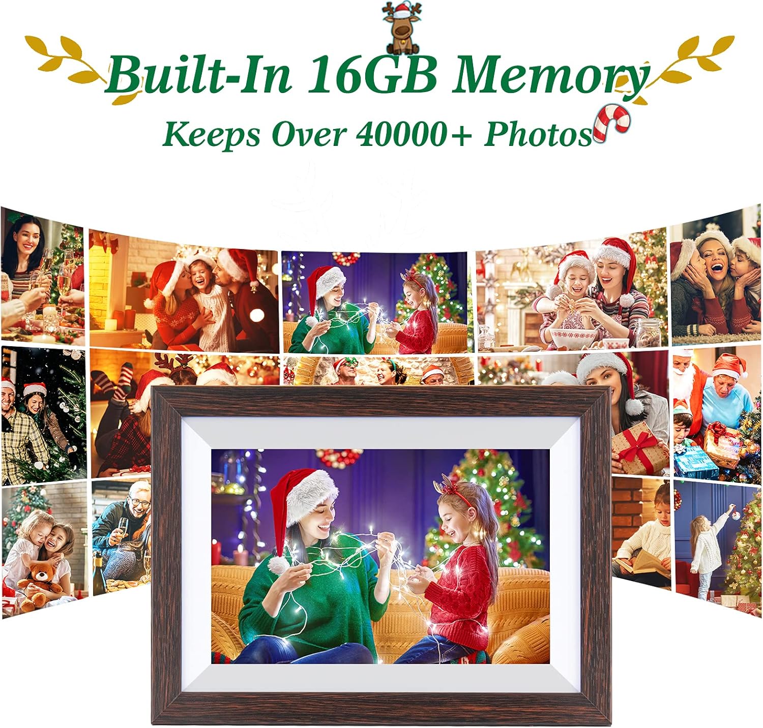 Frameo-Digital-Picture Frame 10.1 Inch Electronic-Digital Photo Frame with IPS Touch Screen HD Display, Smart WiFi Photos or Videos Farme via Free Frameo APP (Brown Wood Frame)