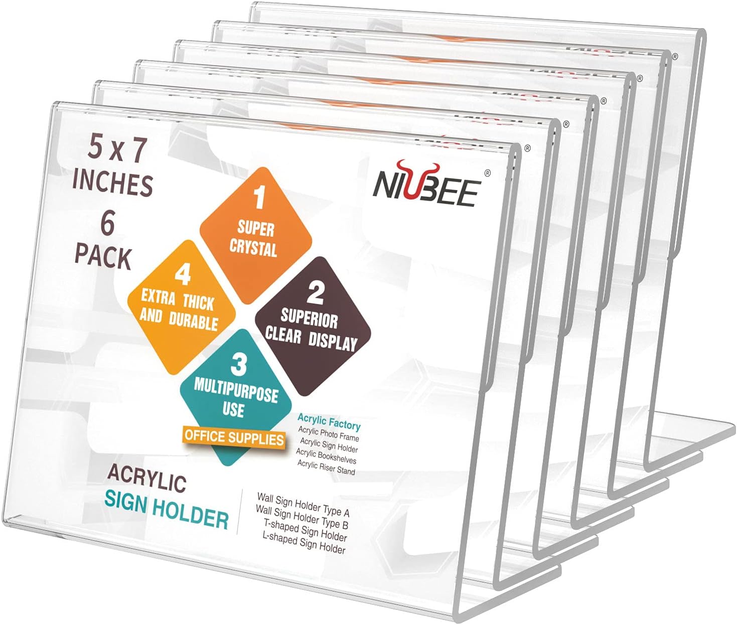 • STABLE AND STURDY - Made from 2mm thickness crystal clear acrylic with wide stable base, NIUBEE acrylic display stand supports long-lasting strength and use. Wide flat base allows free-standing vertical presentation of inserts, keeps the unit stable on counters, tables, desktops etc.
