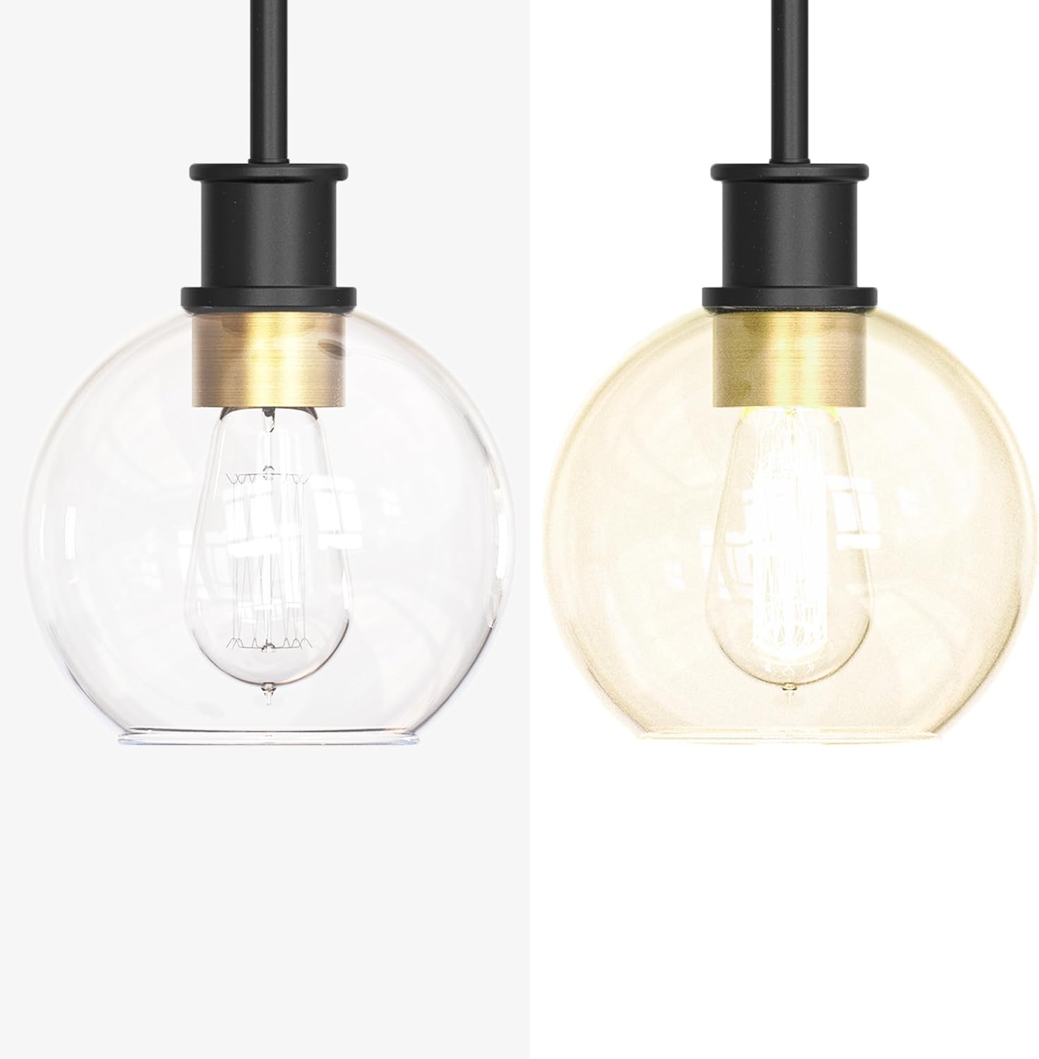 Black and Gold Pendant Light, Modern Globe Pendant Light, Island Pendant Lights with 6.5 inch Clear Globe Glass Shade for Kitchen Island, Hallway, Entryway, Dining Room, Bedroom