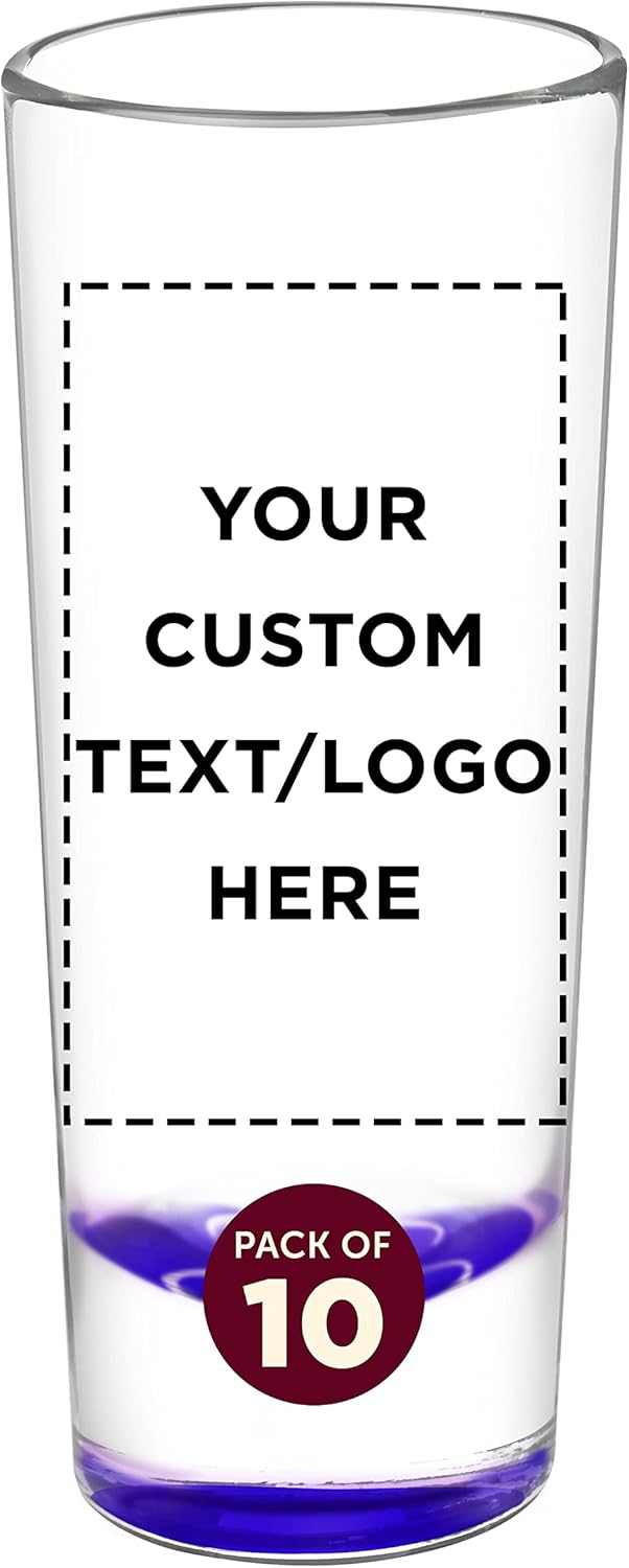 Custom Cordial Shooter Shot Glasses 2 oz. Set of 10, Personalized Bulk Pack - Great for Birthdays, Parties, Indoor & Outdoor Events - Purple