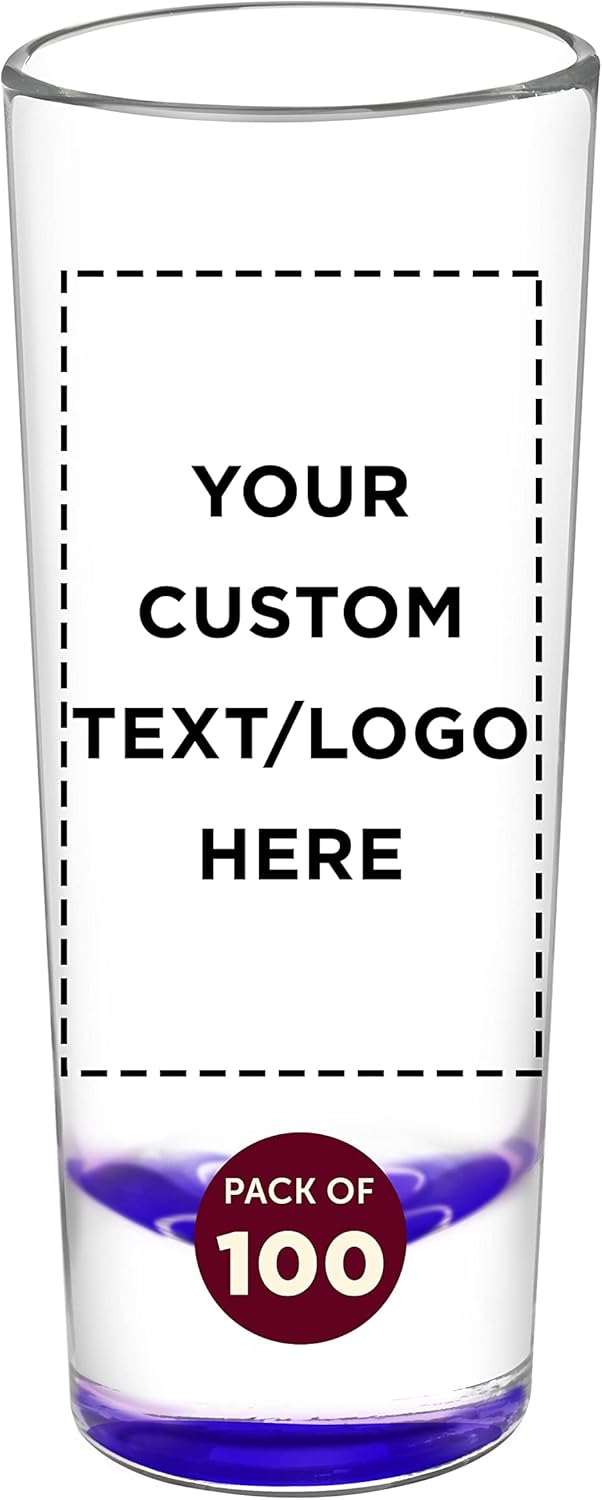 Custom Cordial Shooter Shot Glasses 2 oz. Set of 100, Personalized Bulk Pack - Great for Birthdays, Parties, Indoor & Outdoor Events - Purple