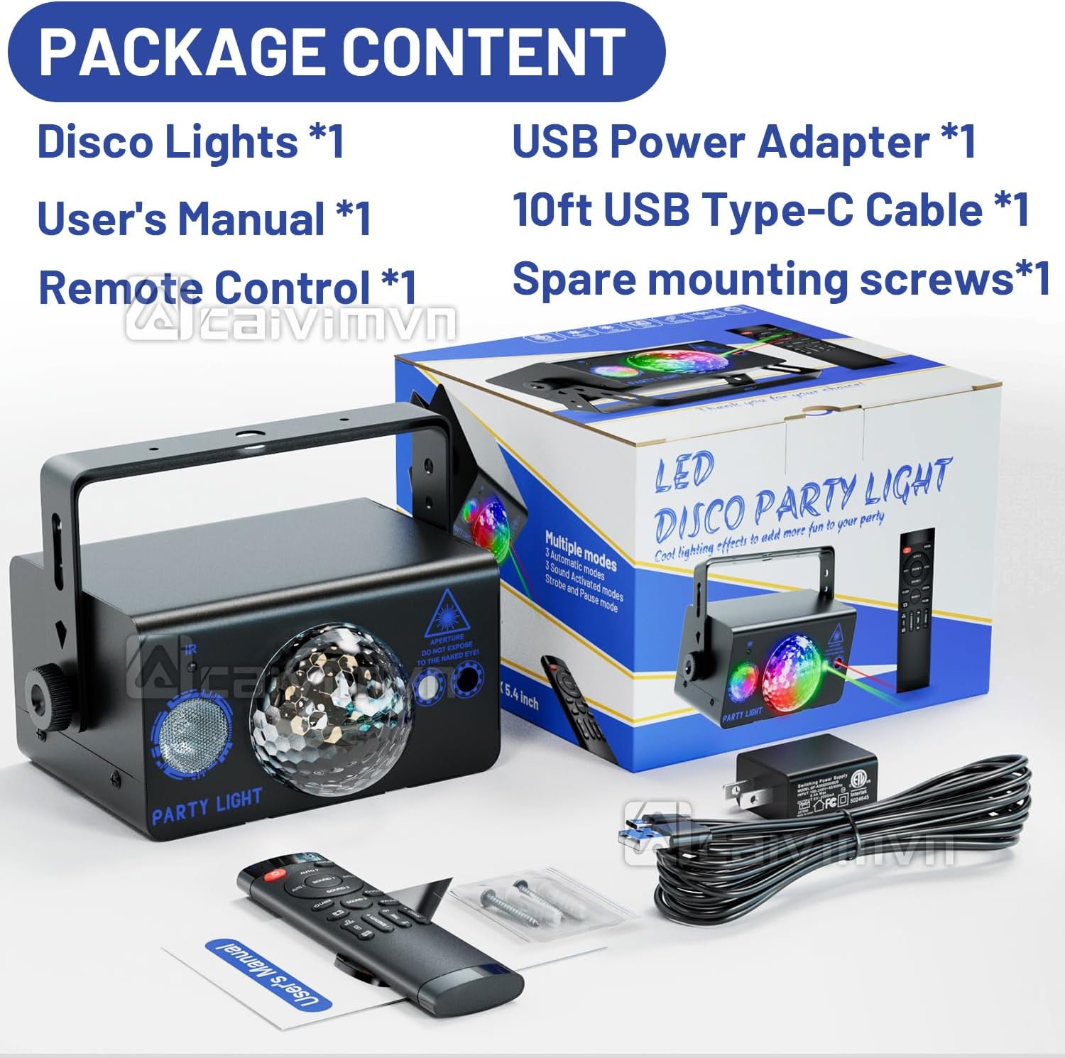• Disco Lights + Disco Ball 2 in 1 Party Lights. New design of the effect combination of 2 kinds of party lights has the red and green graphic of the disco and the 7-color color atmosphere of the disco ball. Make your party more beautiful and interesting.