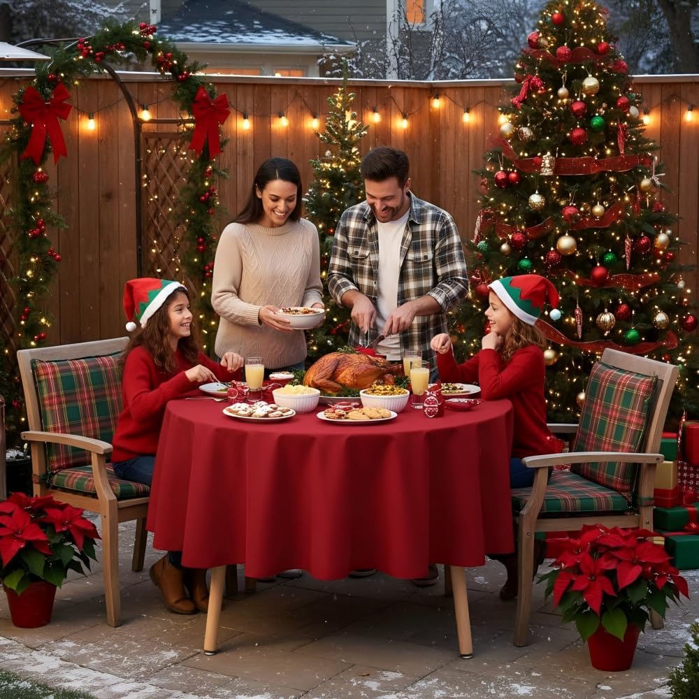 sancua Round Tablecloth - 80 Inch - Water Resistant Spill Proof Washable Polyester Table Cloth Decorative Fabric Table Cover for Dining Tables, Buffet Parties and Camping, Red