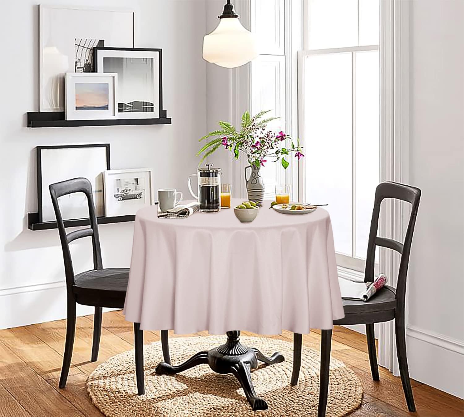 sancua Round Tablecloth - 90 Inch - Water Resistant Spill Proof Washable Polyester Table Cloth Decorative Fabric Table Cover for Dining Tables, Buffet Parties and Camping, Blush