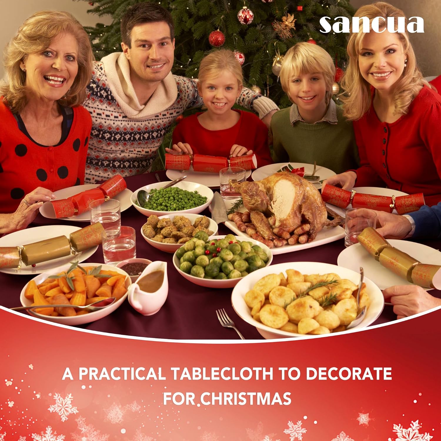 sancua Round Tablecloth - 48 Inch - Water Resistant Spill Proof Washable Polyester Table Cloth Decorative Fabric Table Cover for Dining Tables, Buffet Parties and Camping, Burgundy
