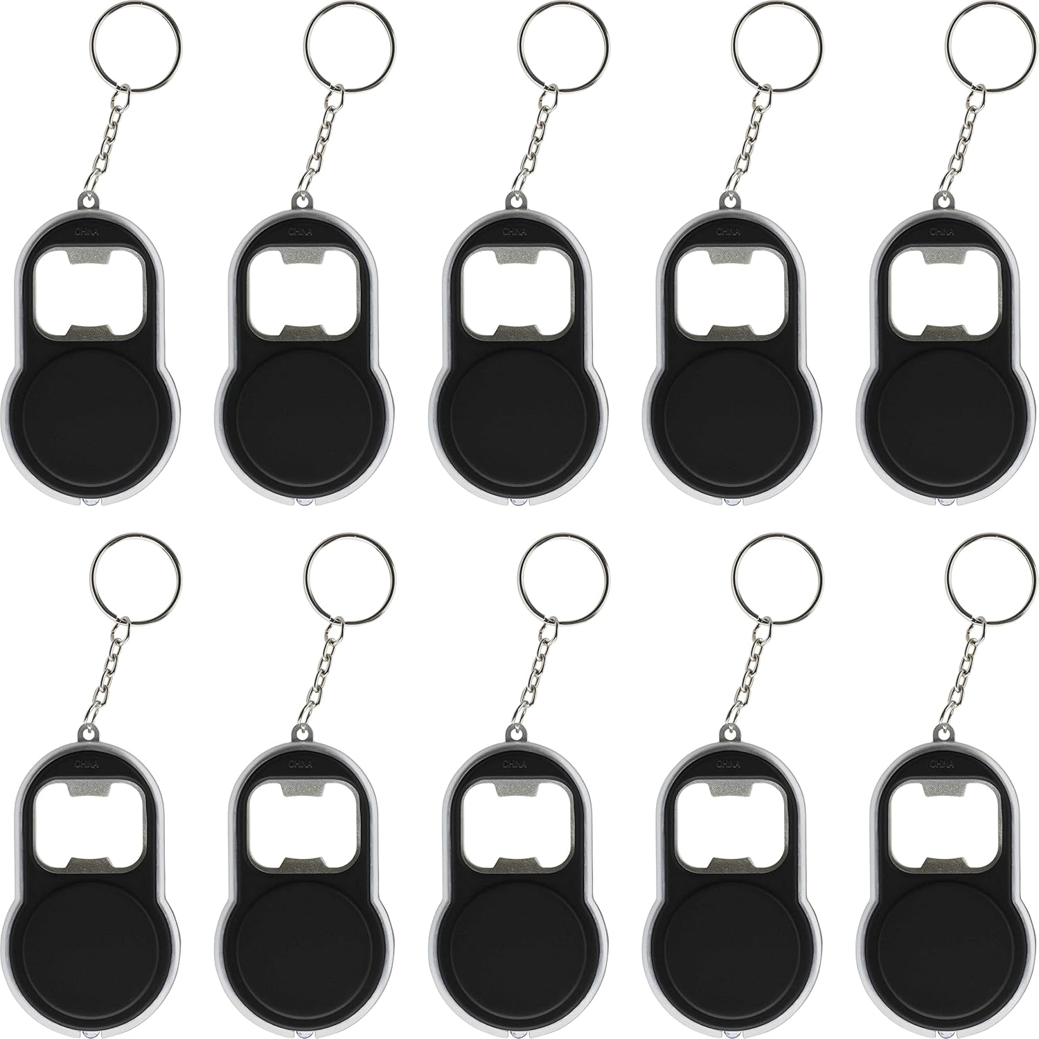 Bottle Opener & LED Keychains Set of 10, Bulk Pack - Perfect for Tradeshows, Party Favors, Other Events - Black