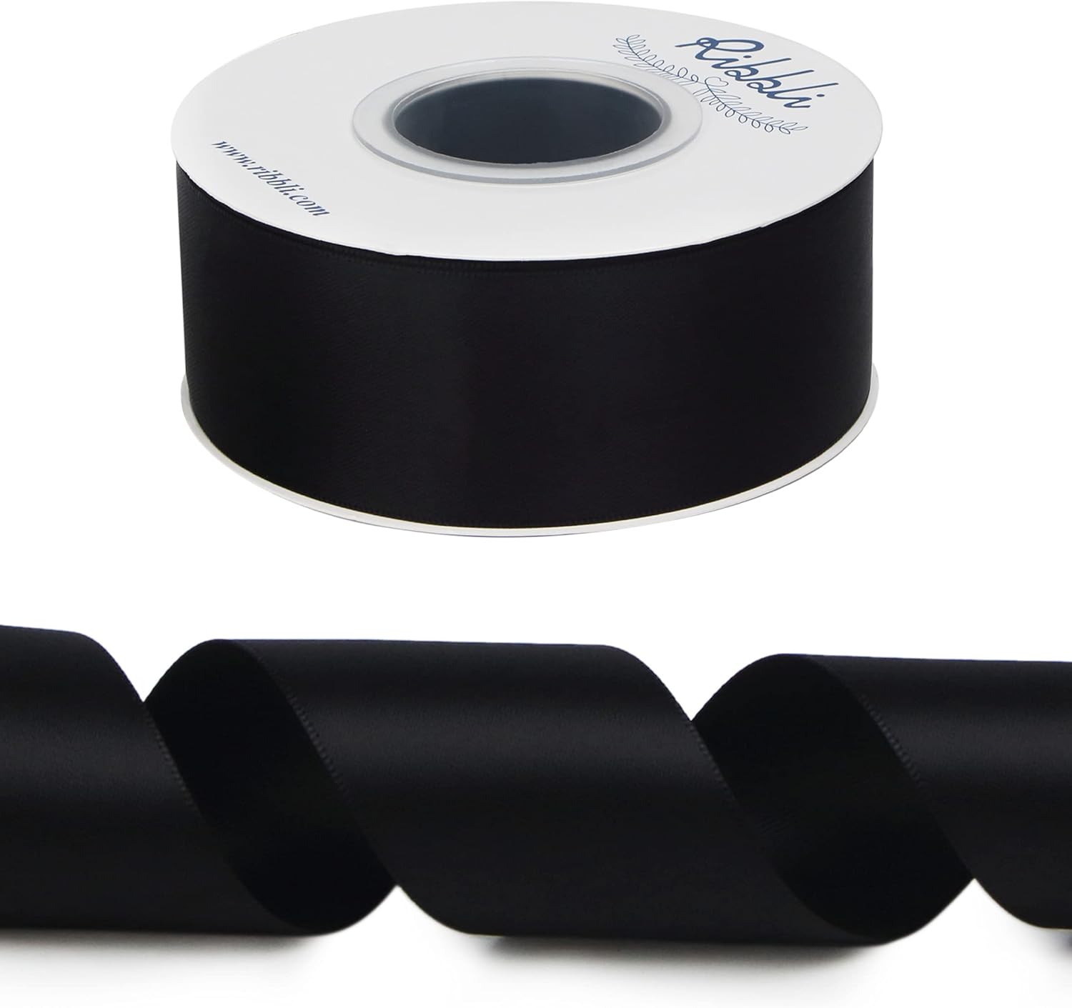 Ribbli Black Double Faced Satin Ribbon,1-1/2” x Continuous 25 Yards,Use for Bows Bouquet,Gift Wrapping,Wedding,Floral Arrangement