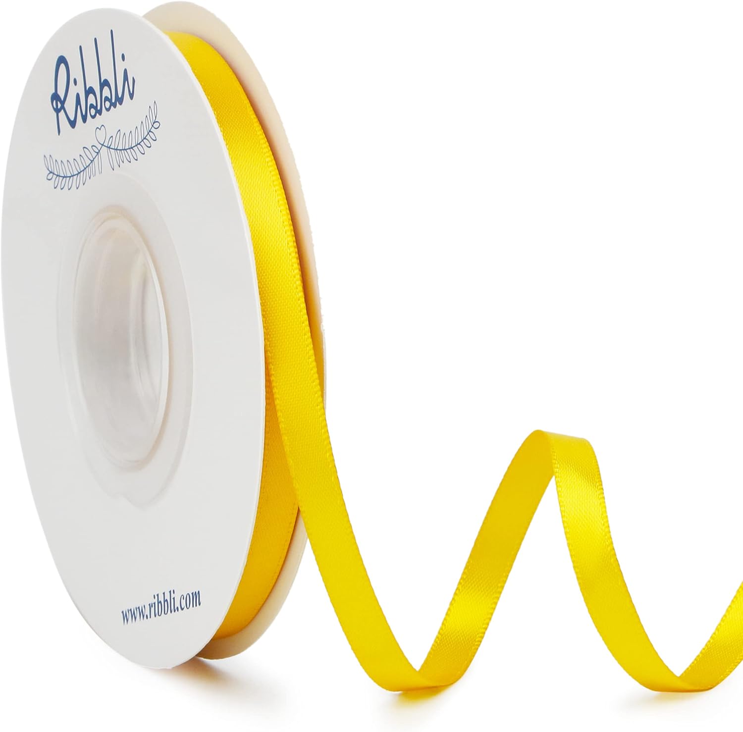 Ribbli Maize Yellow Double Faced Satin Ribbon,1/4” x Continuous 25 Yards,Use for Bows Bouquet,Gift Wrapping,Baby Shower,Floral Arrangement