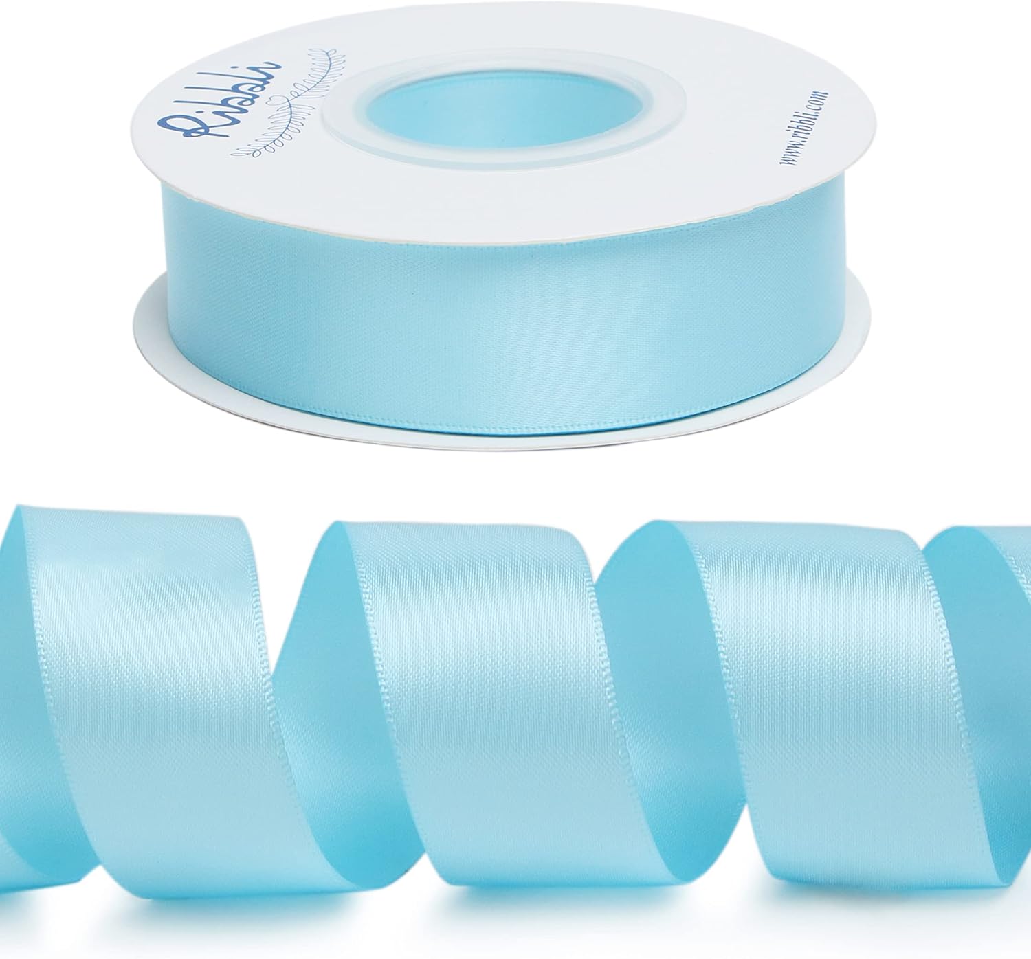 Ribbli Light Blue Double Faced Satin Ribbon,1” x Continuous 25 Yards,Use for Bows Bouquet,Gift Wrapping,Baby Shower,Floral Arrangement