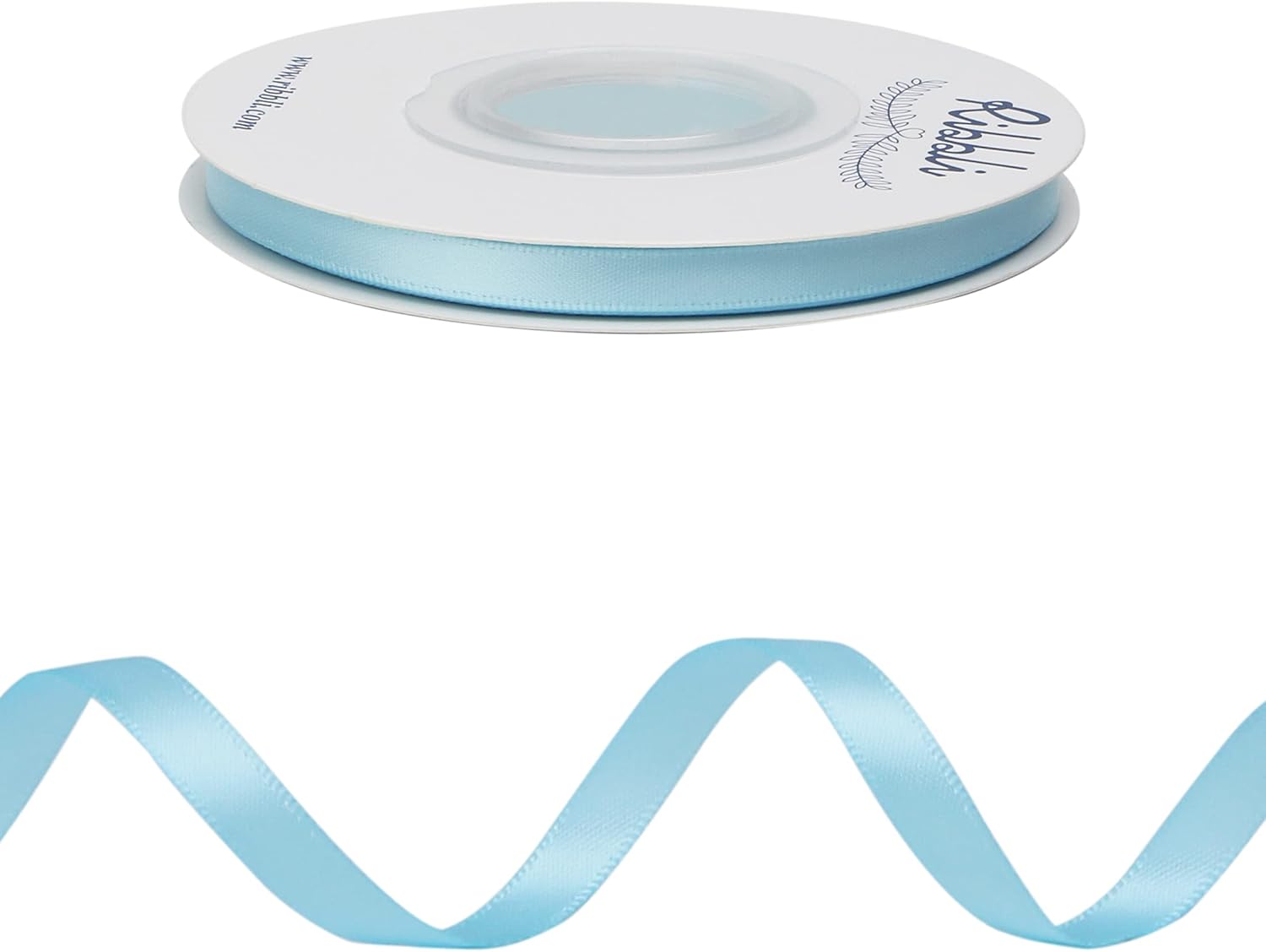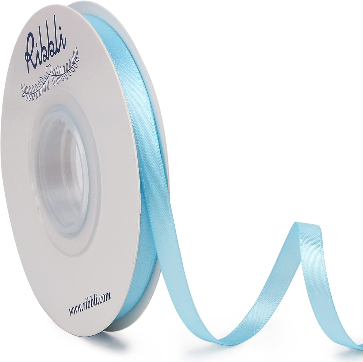 Ribbli Light Blue Baby Blue Double Faced Satin Ribbon,1/4” x Continuous 25 Yards,Use for Bows Bouquet,Gift Wrapping,Baby Shower,Floral Arrangement