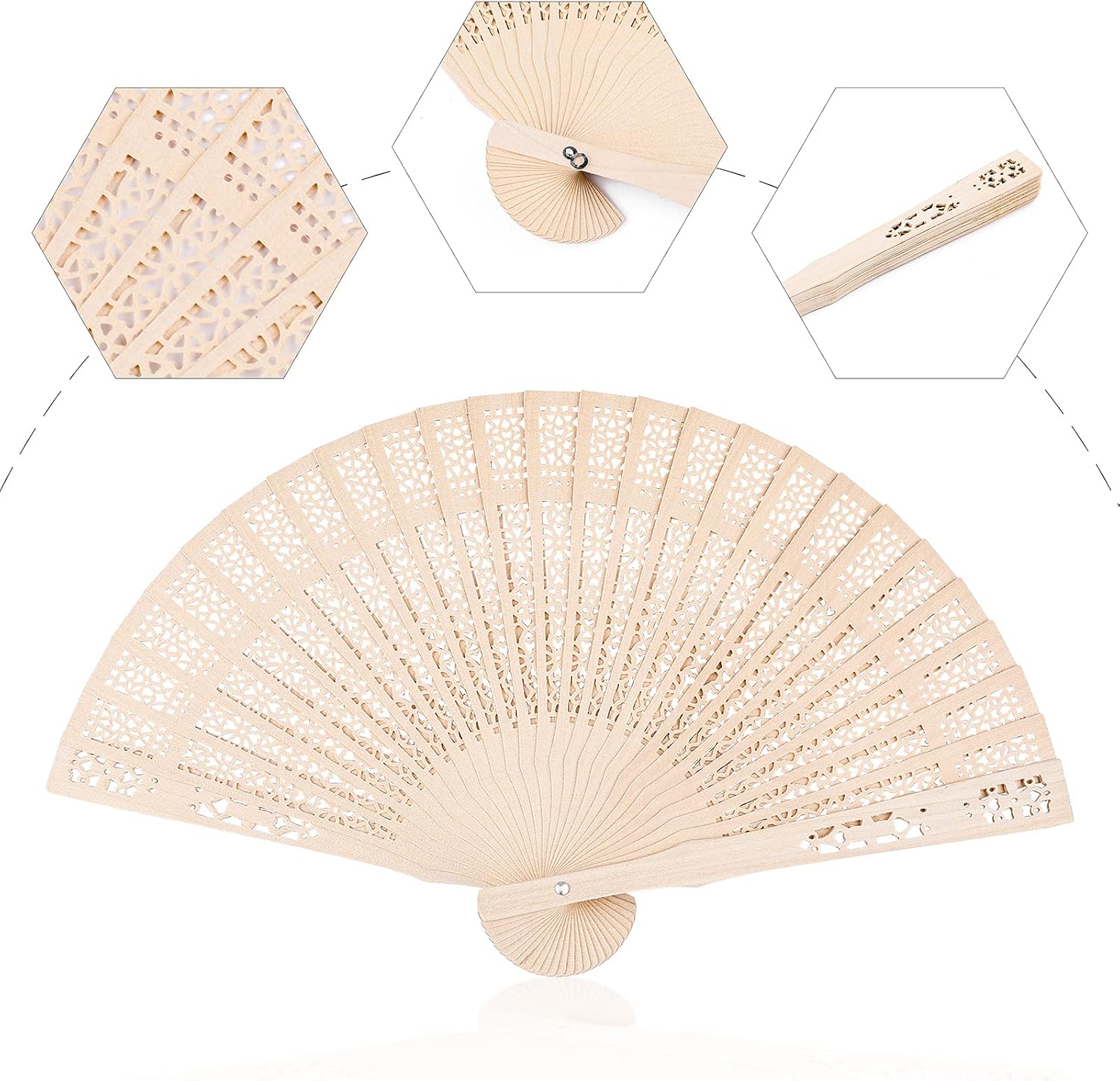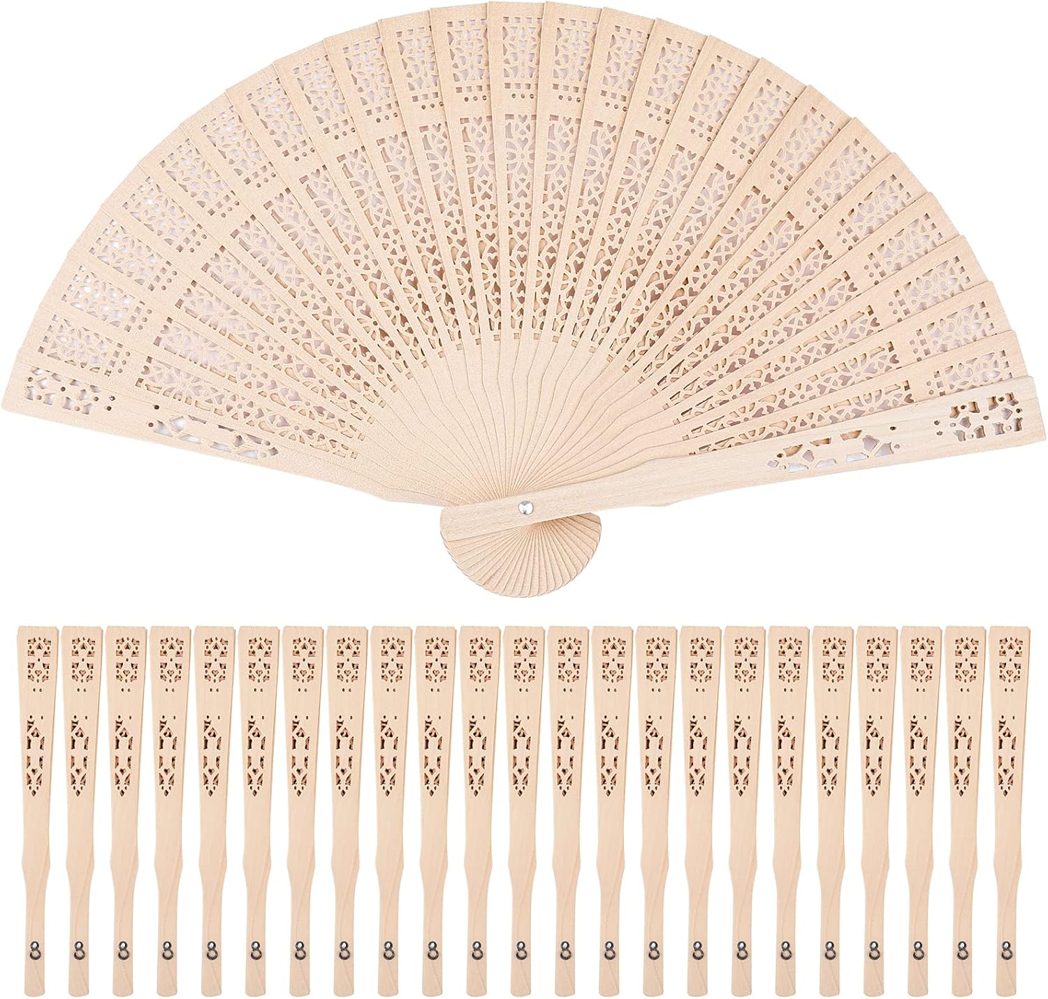 Durony 24 Piece Sandalwood Fans - Wooden Handheld Folding Fans, Scented, Vintage, for Wedding Decoration & Christmas Gifts, Natural
