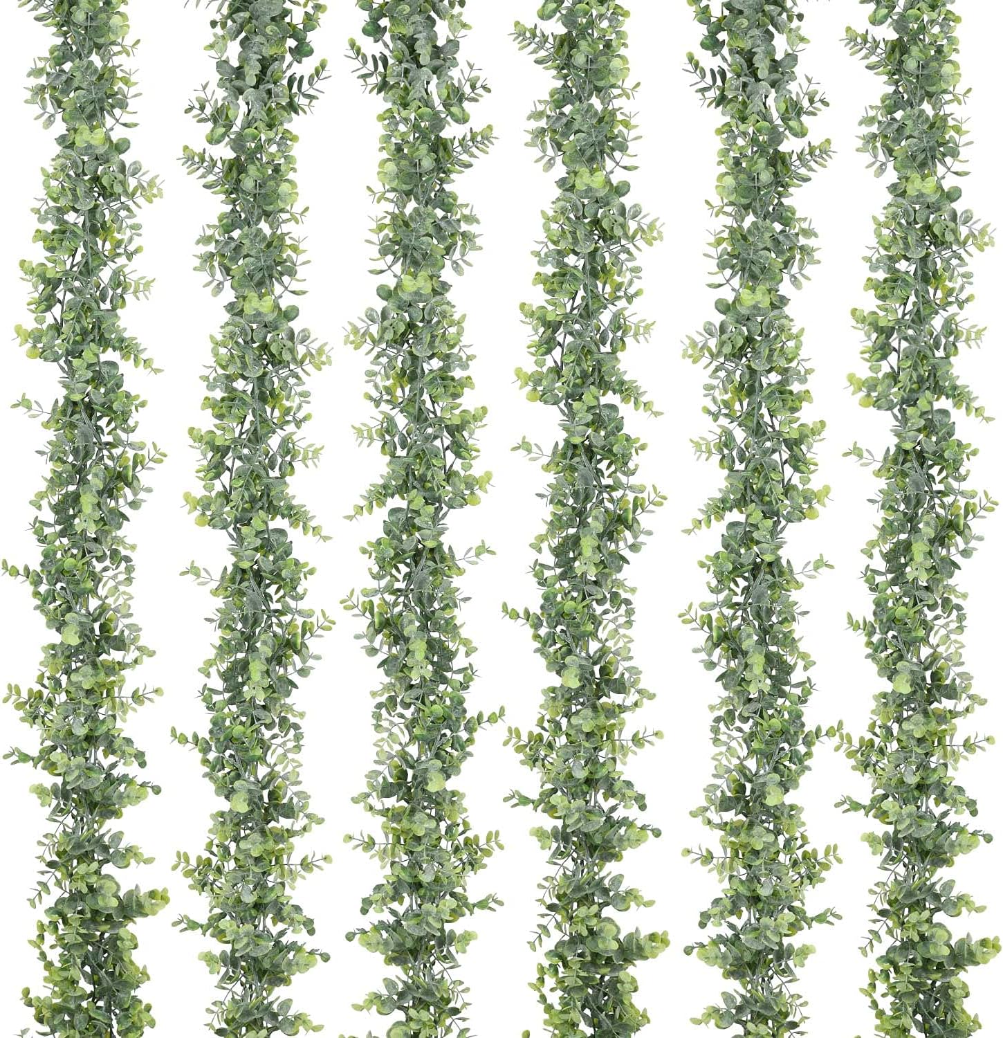 • 6 Strands of faux eucalyptus garland, each strand with 134 pcs fake eucalyptus leaves, total 804 pcs eucalyptus leaves. This eucalyptus garland has many branches, looks very realistic and Three-dimensional.