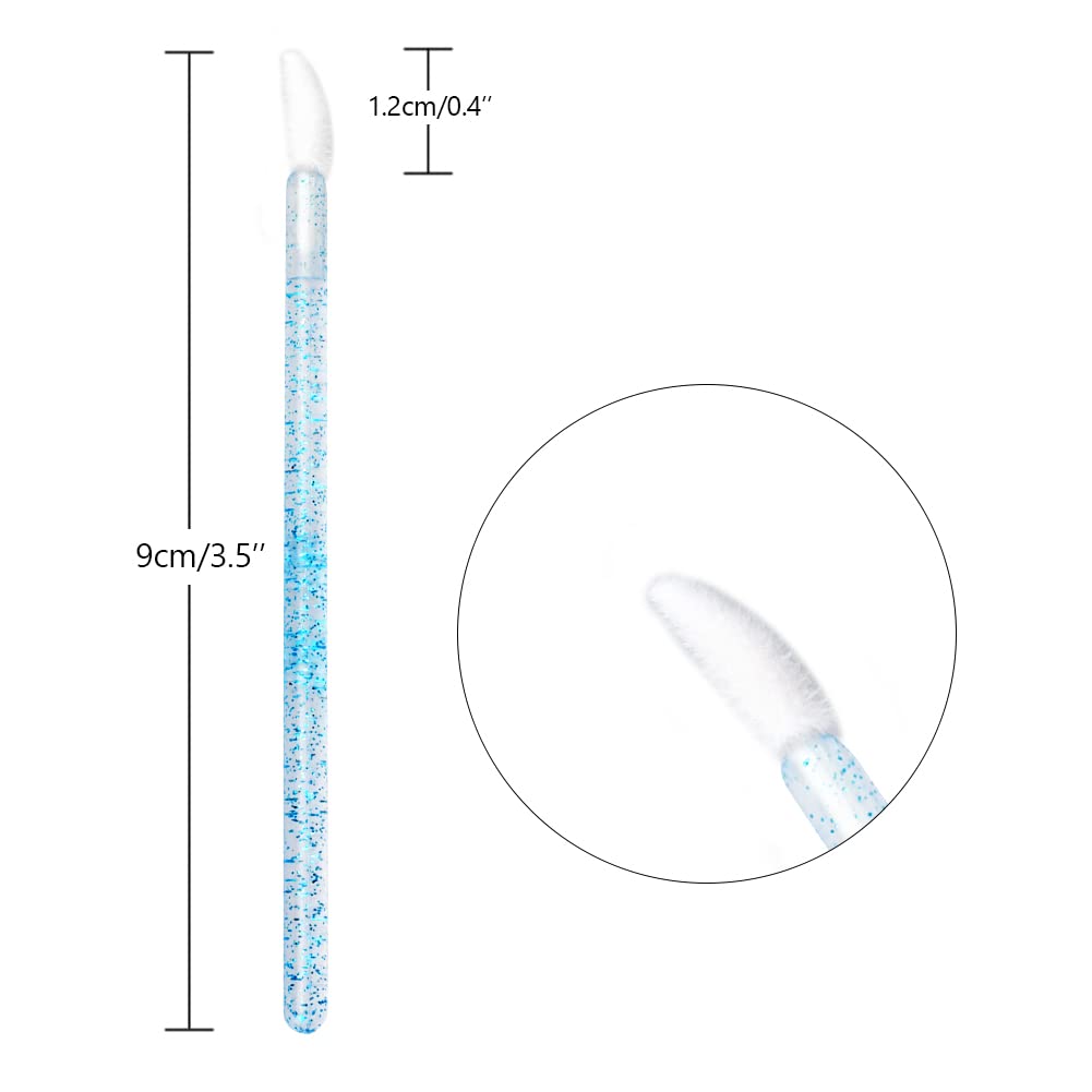 • Package & Size: 100PCS disposable lip brushes, enough quantity for you to use and change. The lip wands are 3.54''/9cm long, the cotton brush head is 0.47''/1.2cm, easily suited for your daily needs and perfect for lip gloss or lipstick