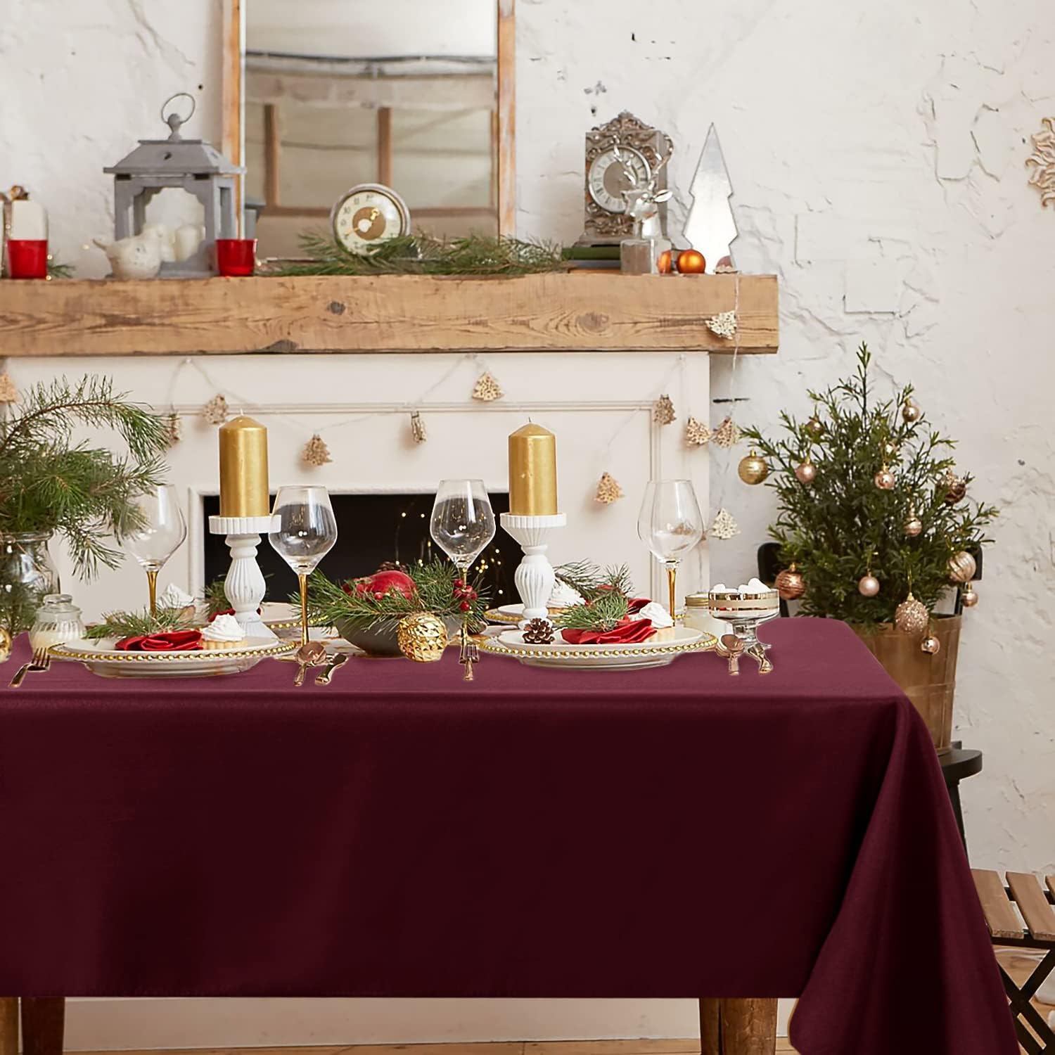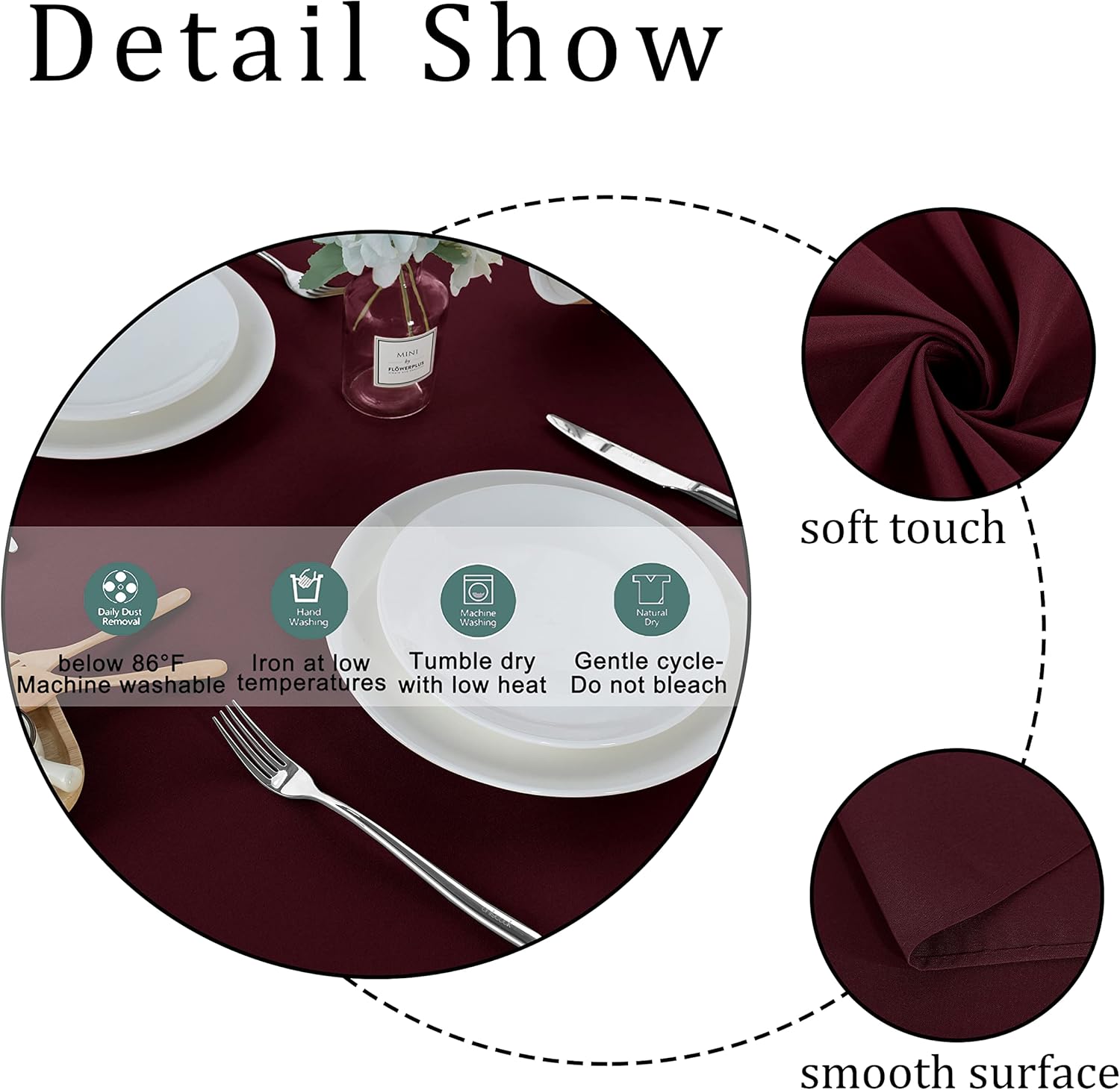 • HIGH QUALITY MATERIAL: Our tablecloth are crafted from high quality durable polyester fabric, perfect to protect and decorate your tables. The package will include 1 piece tablecloth measuring 60 W by 60 L inch Burgundy tablecloth