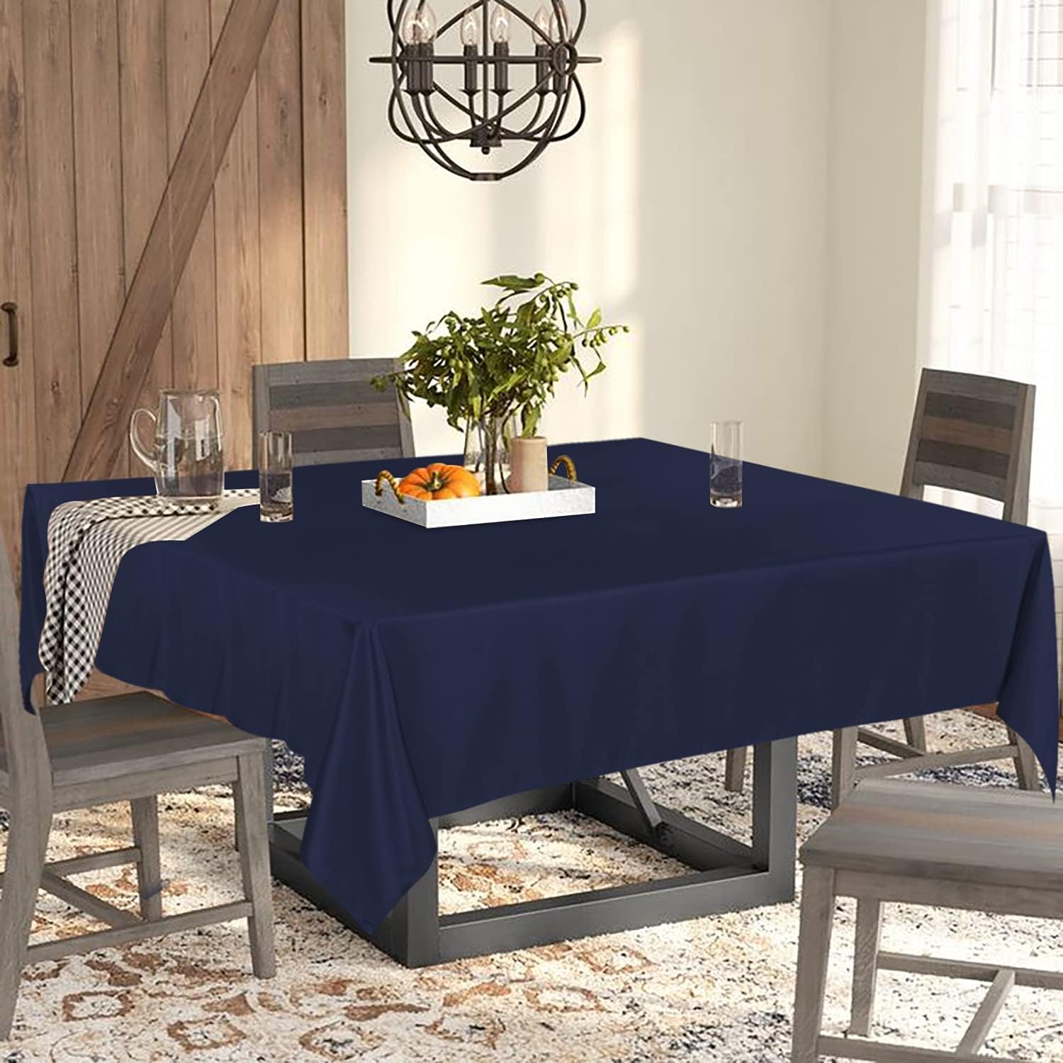 • HIGH QUALITY MATERIAL: Our tablecloth are crafted from high quality durable polyester fabric, perfect to protect and decorate your tables. The package will include 1 piece tablecloth measuring 60 W by 60 L inch Navy tablecloth