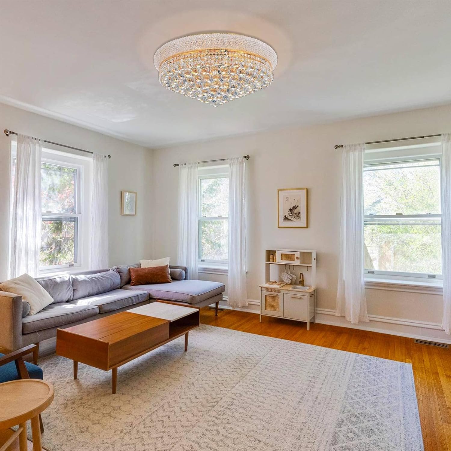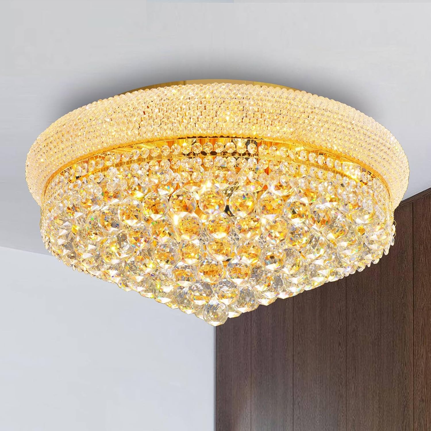 • The Fixture Dimension for this crystal chandelier ceiling Light is Height 12 inches x Diameter 24 inches. The crystal ceiling light is suitable for a variety of home or office ceiling decorations.