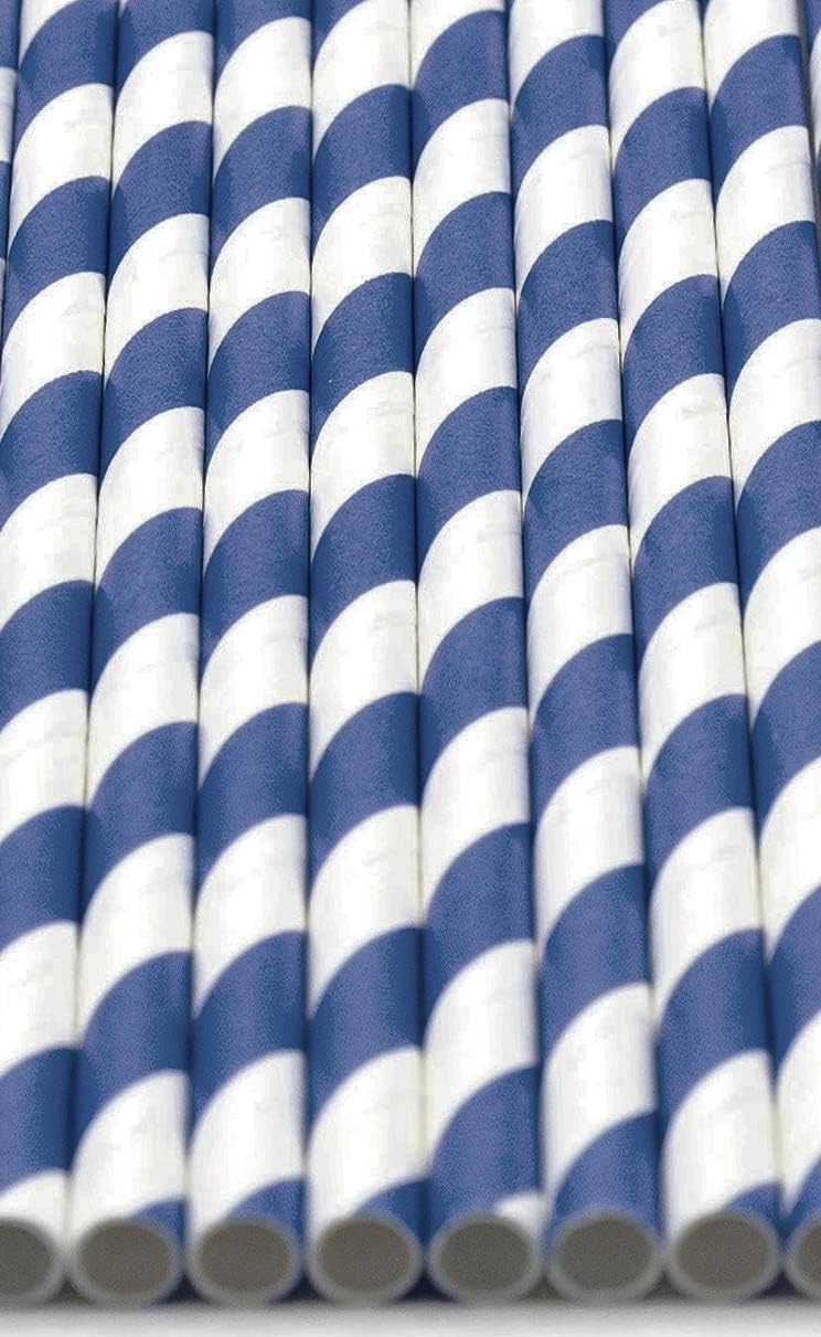 • Pack of 900 Navy Blue Swirls wrapped paper straws that are 7.75” long and have a diameter of 0.25”. Made with 4-ply paper which translates into thicker and more resilient straws that won’t wilt or change shape in both hot and cold drinks.