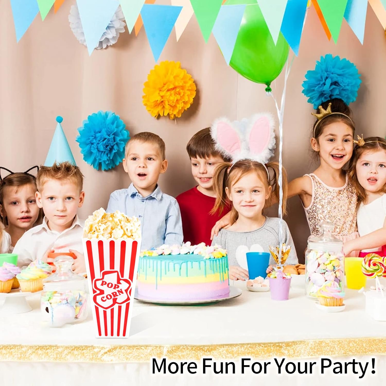 Plastic Popcorn Containers Red & White Striped Retro Style Reusable Popcorn Boxes for Movie Night 4”x8” (4 Pack)