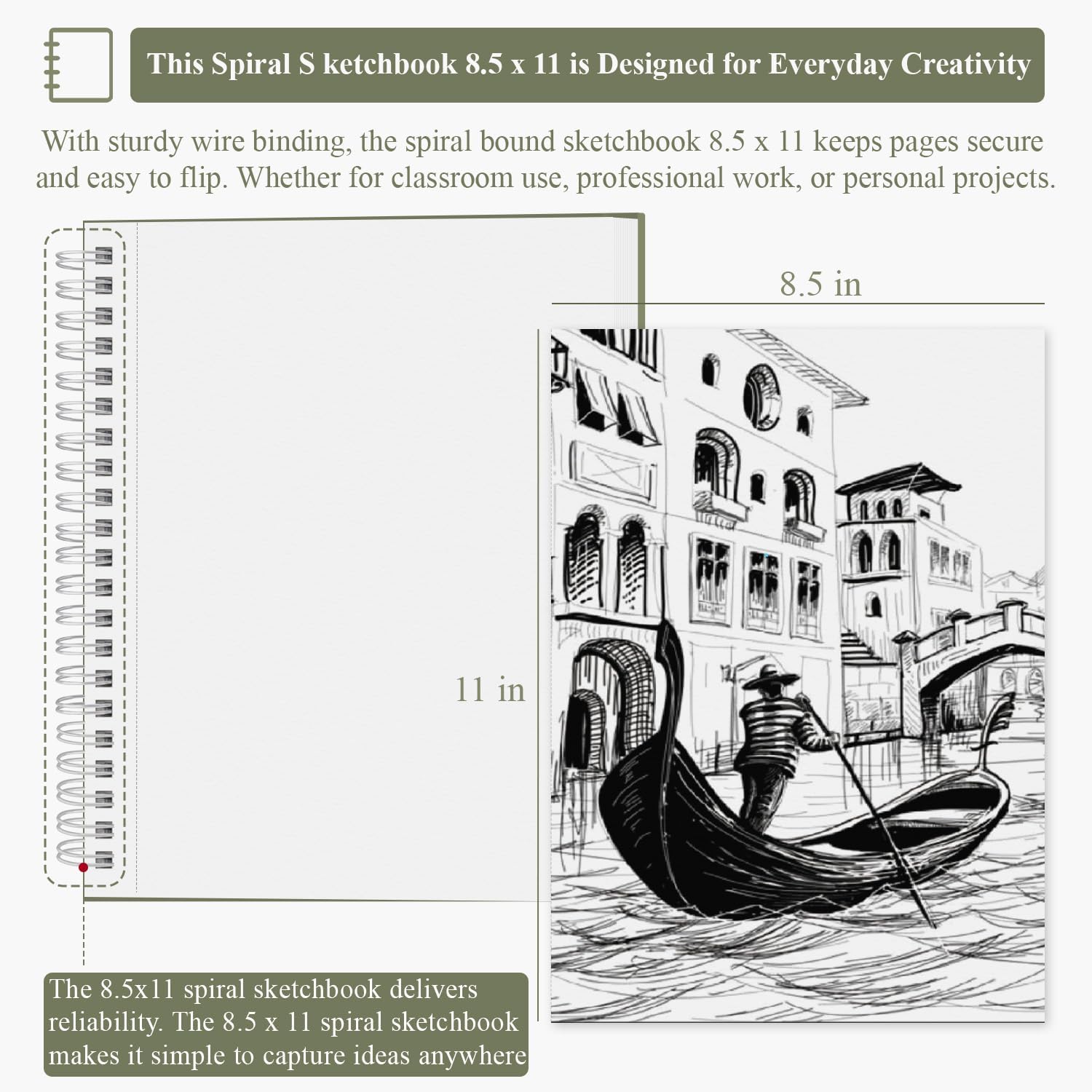 • SIDE SPIRAL-BOUND SKETCHBOOK, EASY PAGE TURNING โ€“ With a side spiral bind, all the drawing paper of this spiral sketchbook 8.5x11 is firmly held together and can be easily flipped and kept on the back. The metal spiral bind of sketchbook for drawing is sturdy and will not easily deform even after months of use, so you can feel free to draw your creations on the 8.5 x 11 sketchbook, SuFly art sketchbook can keep them long lasting.