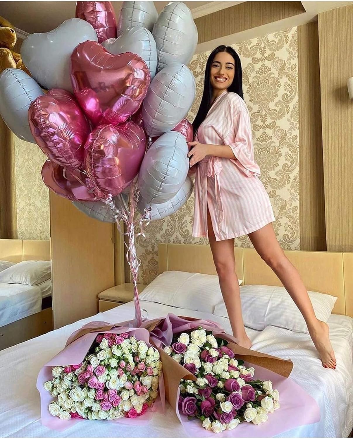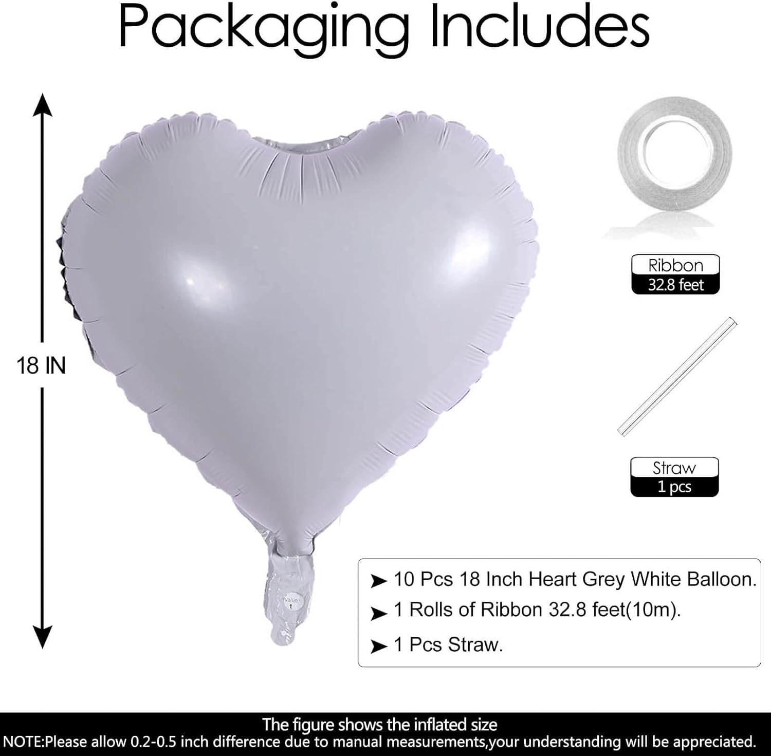 • Package Included:10Pcs 18 inch Grey White Heart Balloons (uninflated) + 1pcs Straw +1pcs 32 foot Ribbon Roll
