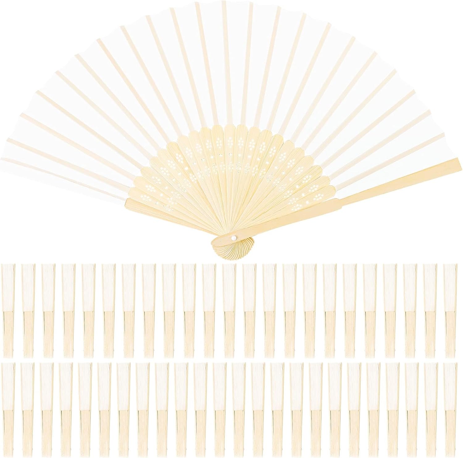 URATOT 48 Pieces White Folding Fans Silk Bamboo Folding Fans Handheld Fan for Wedding, Party Decoration
