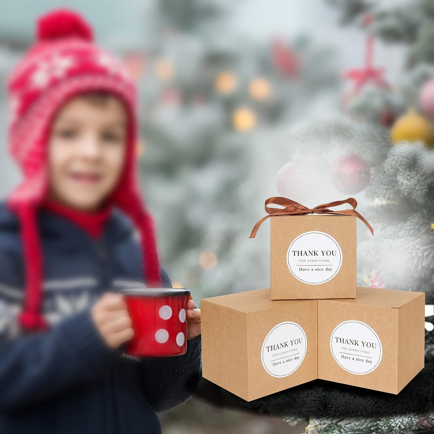 COTOPHER Small Gift Boxes 60 Pack 4x4x4 inches Brown Gift Boxes with Lids for Gifts, Crafting, Wedding Party Favor, Cupcake Boxes, Candy, Bridesmaids Proposal Box with Ribbons and Stickers (Brown, 60)