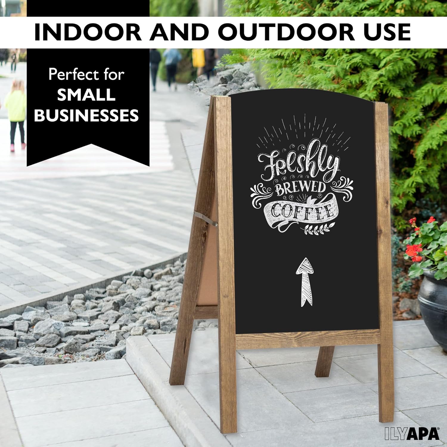 Ilyapa A-Frame Chalkboard Sidewalk Sign - Rounded Top Folding Standing Sandwich Sign for Restaurant, Office, Weddings - Rustic Barnwood, 18 x 31.5 in