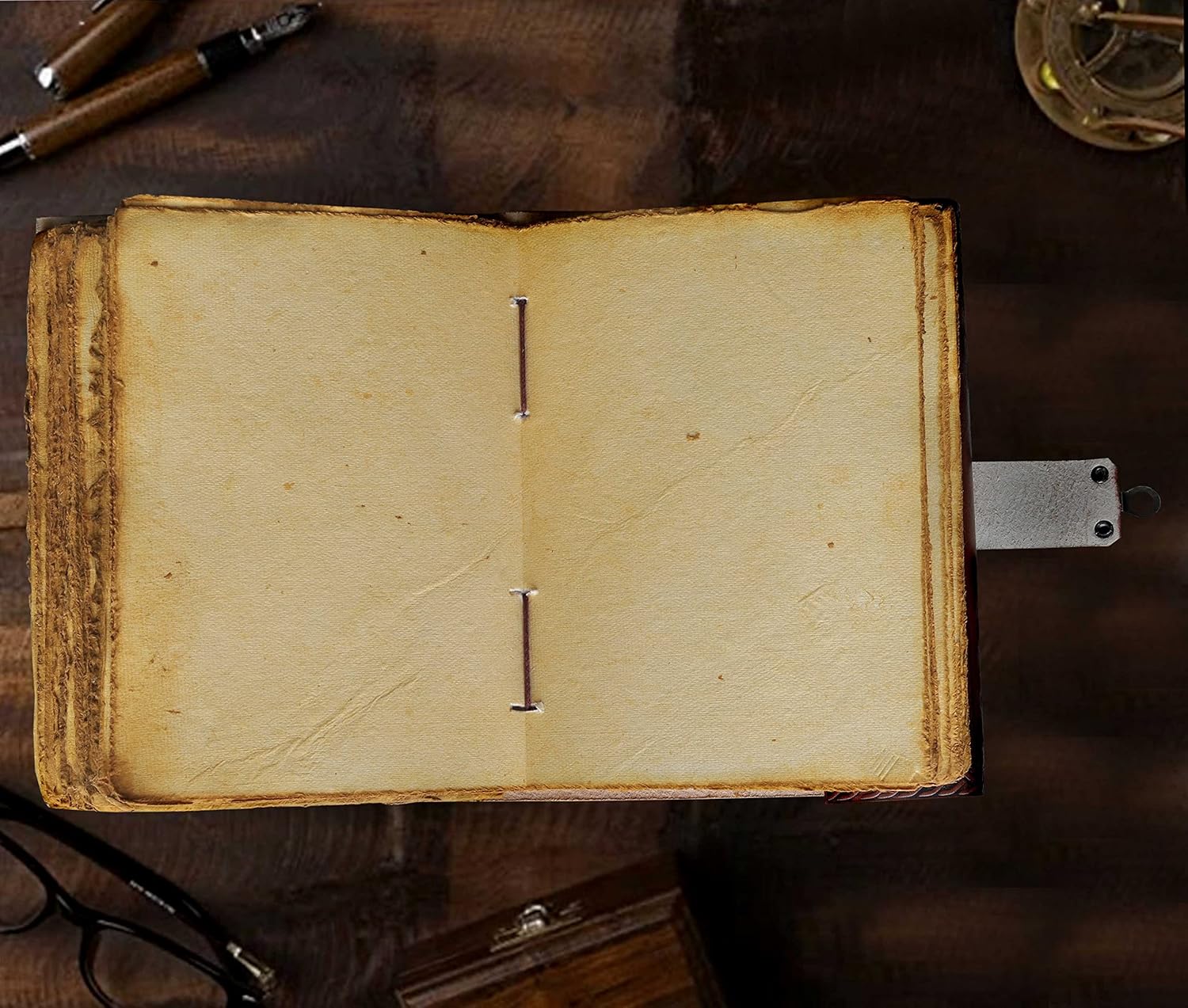 • FUNCTIONAL & SECURE DESIGN: Equipped with an antique brass lock closure, this journal keeps your thoughts and sketches safe while adding old-world charm. The strong, hand-stitched spine prevents page loss, offering peace of mind during daily use or while traveling. Ideal for writers, sketchers, and creatives on the go.