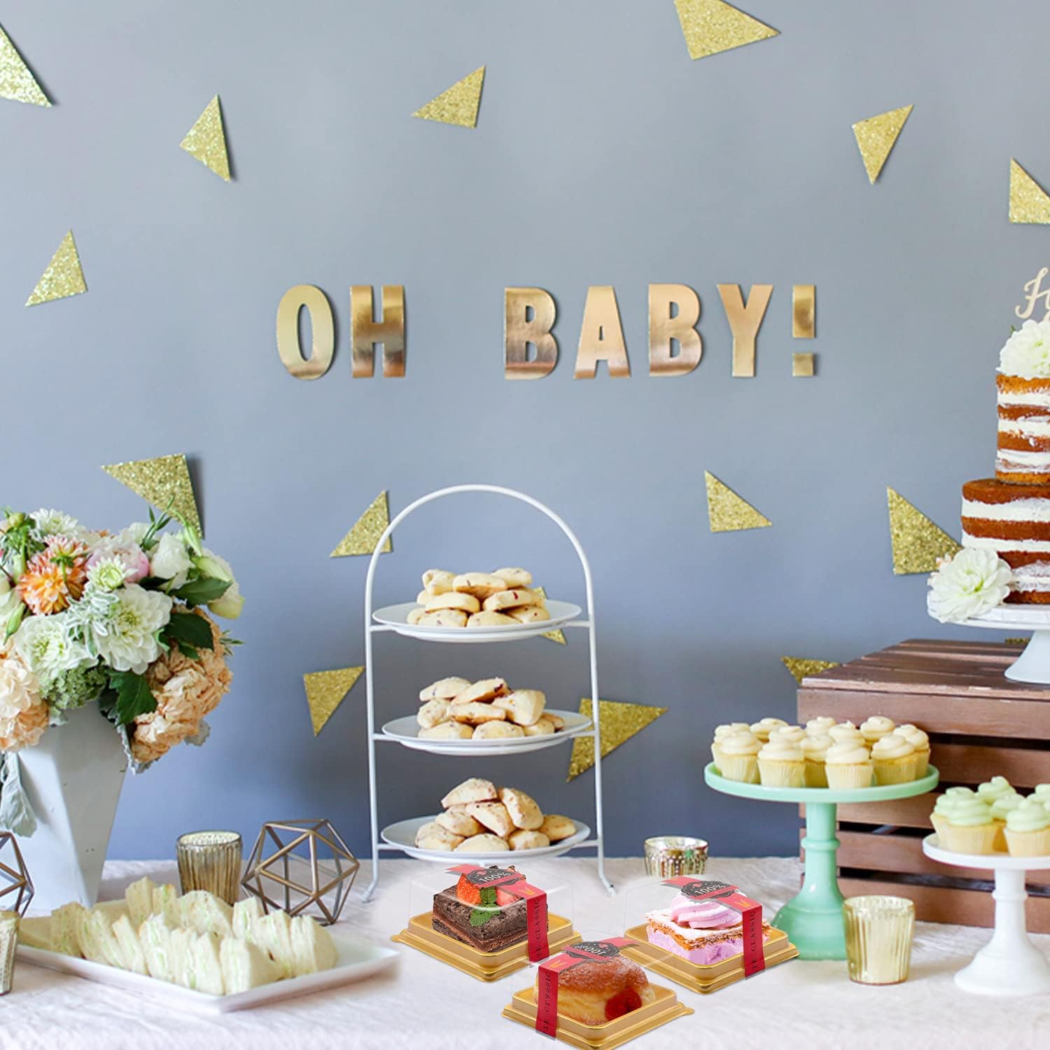 50 Pcs 3.5 Inch Mini Cake Box, Clear Plastic Cupcake Container for Muffins, Cookies, Mooncakes - Small Single Dessert Holder for Wedding, Birthday - Bonus 50 Pcs Gold Stickers